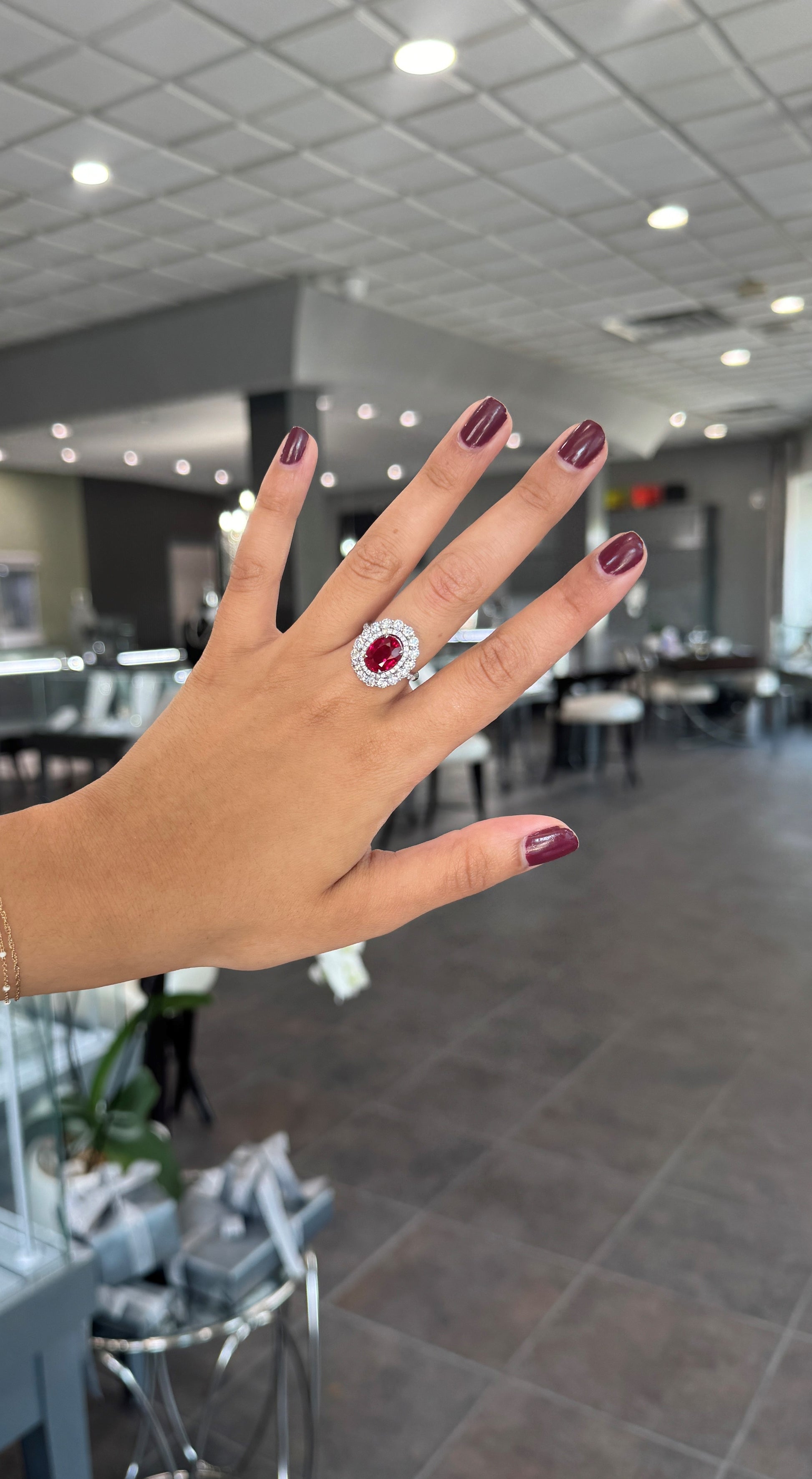 Experience the beauty of everlasting love with our Elegant Oval Ruby Diamond Ring —a masterpiece meticulously crafted to symbolize a bond that is as strong as it is beautiful.