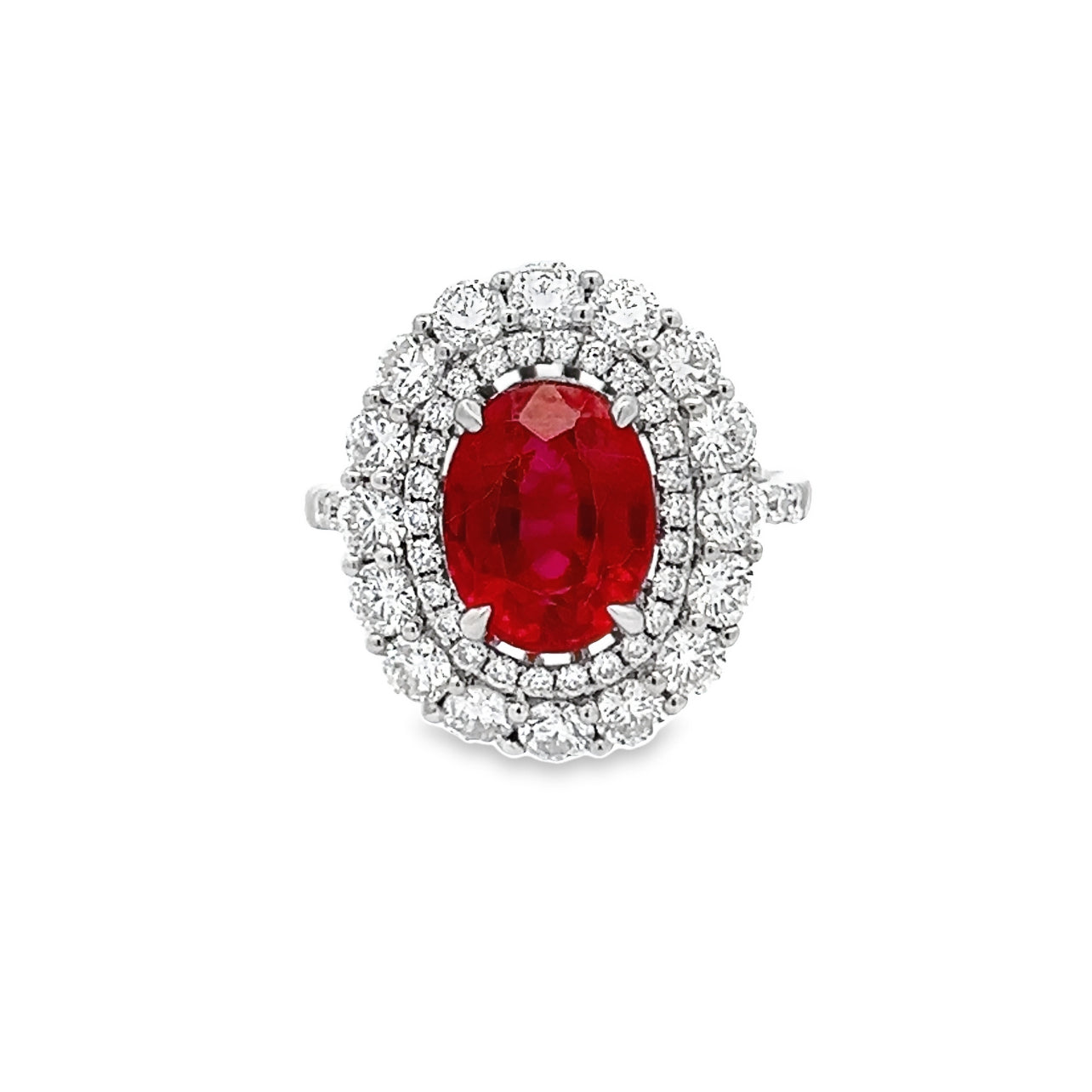 White Gold 18 Karat Ring 52 (1.96tw) Round Diamonds and Compound Oval Ruby (3.99ct)