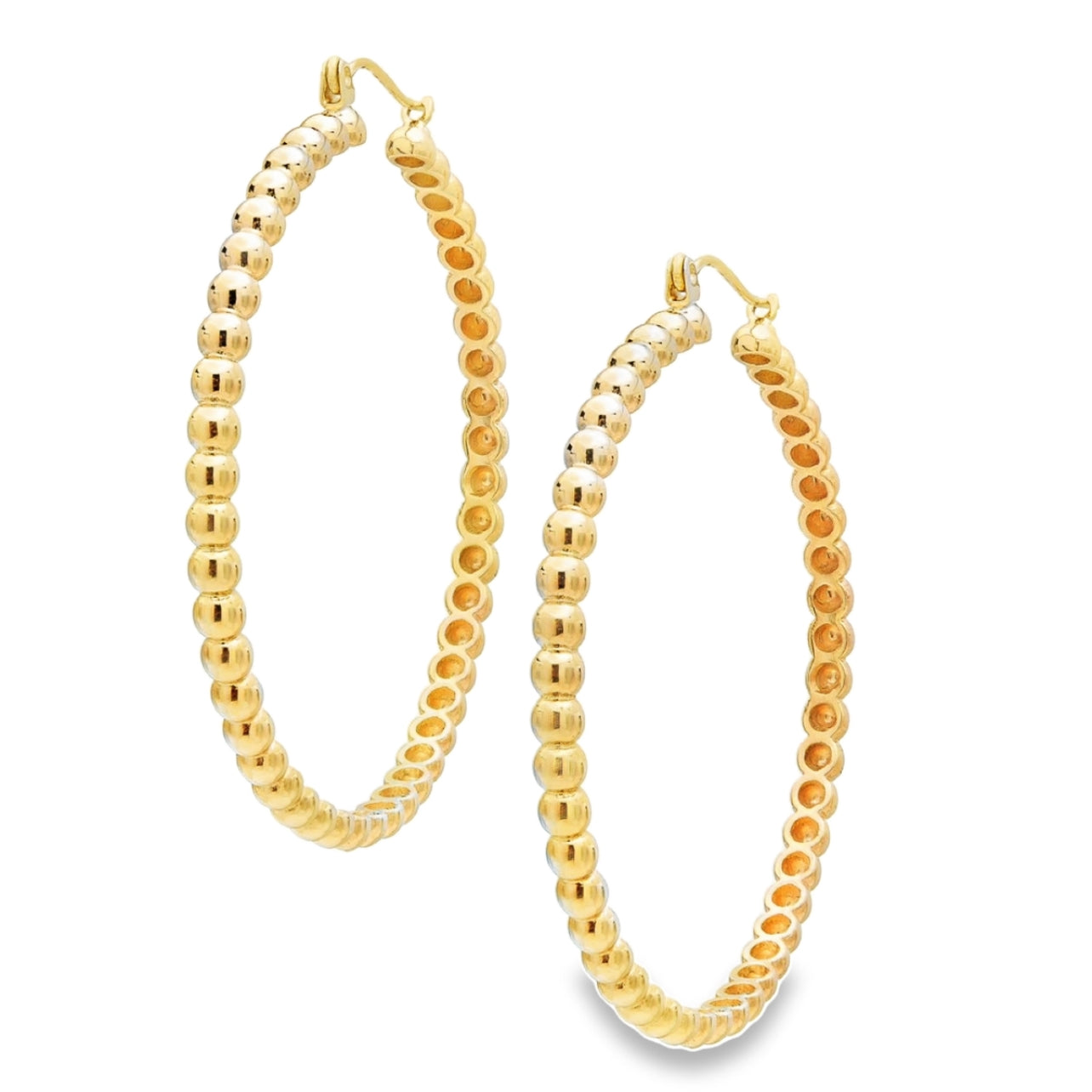 Yellow Gold 14 Karat 1.75" Caviar Bead Hoop Earrings