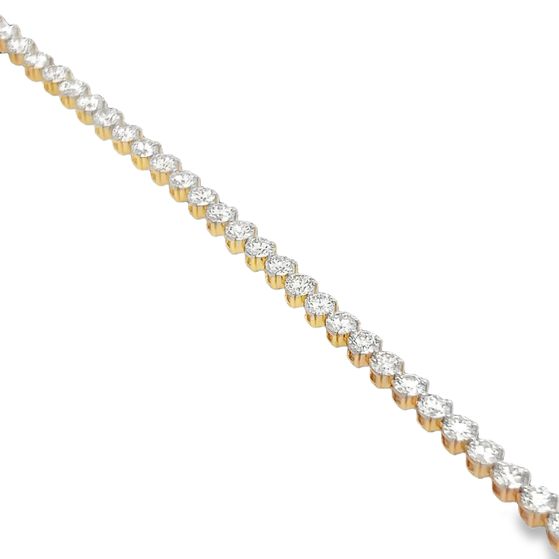 This stunning diamond bracelet features a delicate arrangement of sparkling stones set in a sleek gold band. Perfect for adding a touch of elegance to any outfit, it shines brilliantly in the light, making it an ideal accessory for special occasions or everyday wear.