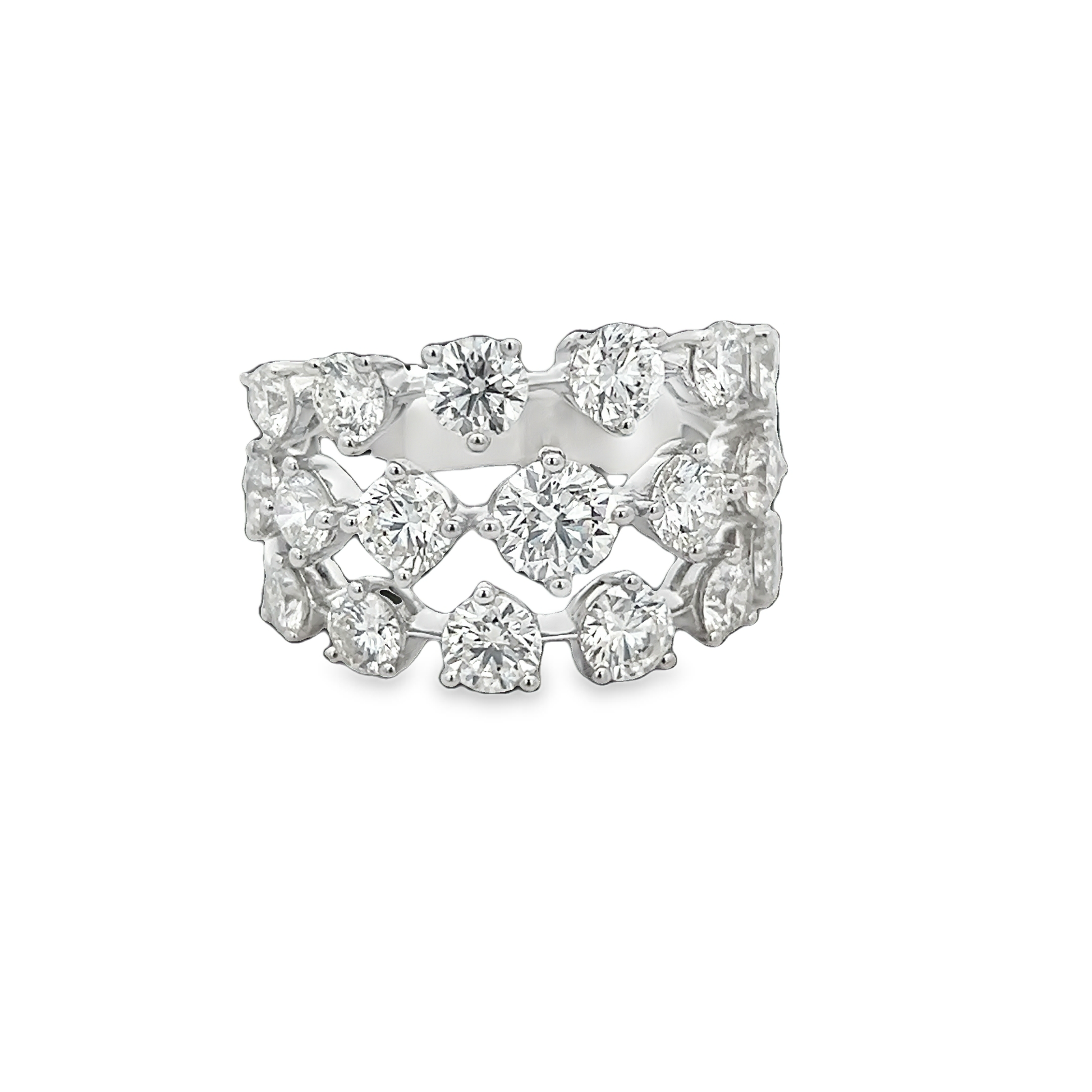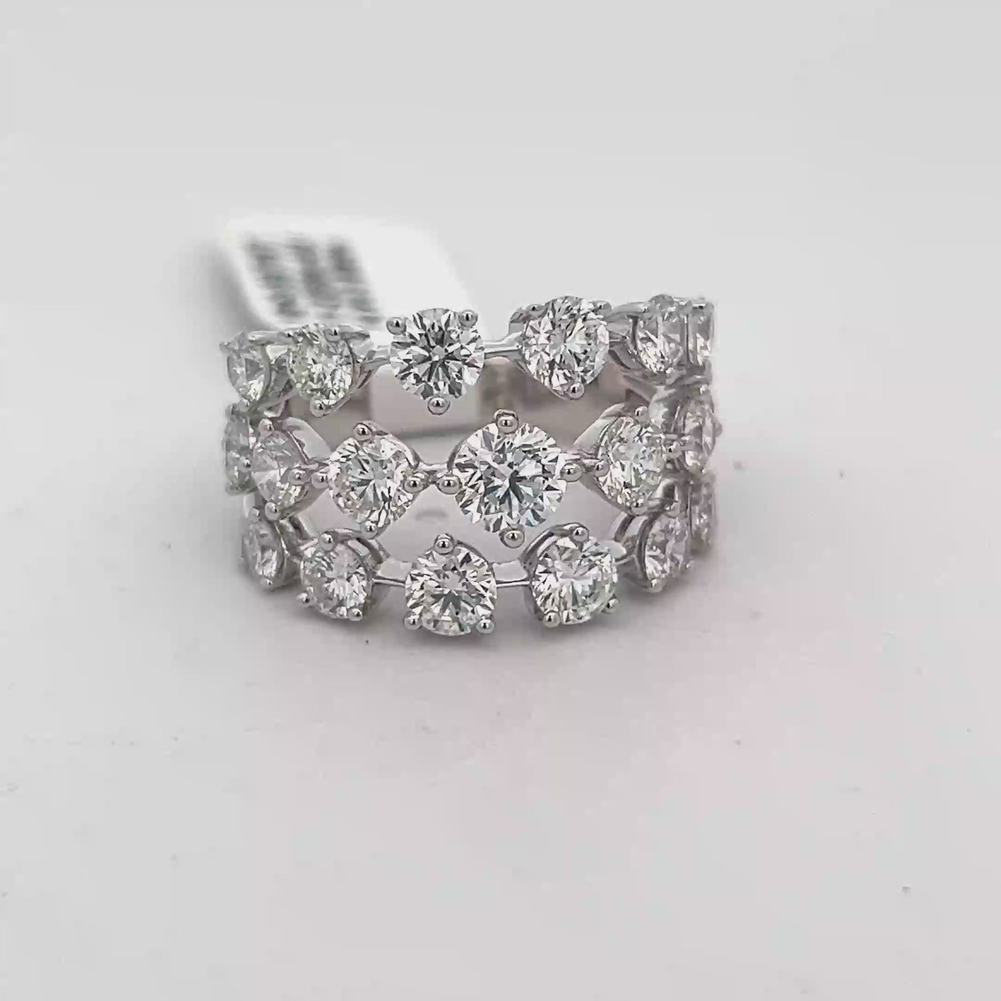 Lady's White 14 Karat 3 Row Diamond Band With 19 = 3.59Twt Round Diamonds (6.9gr)
