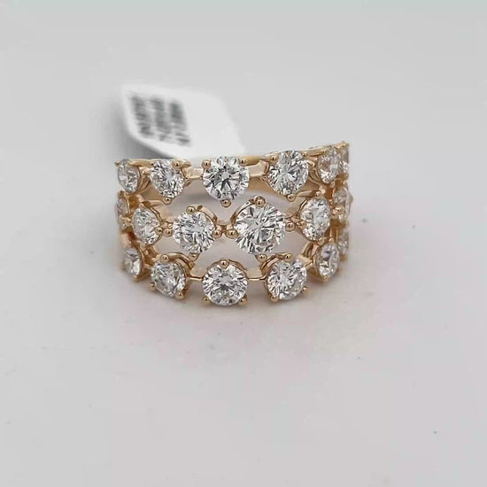 Radiant and sophisticated, this multistone ring showcases a trio of dazzling diamond rows. The brilliant-cut diamonds are elegantly set in a warm yellow gold band, creating a luxurious and timeless design. This statement piece adds sparkle and sophistication to any occasion.