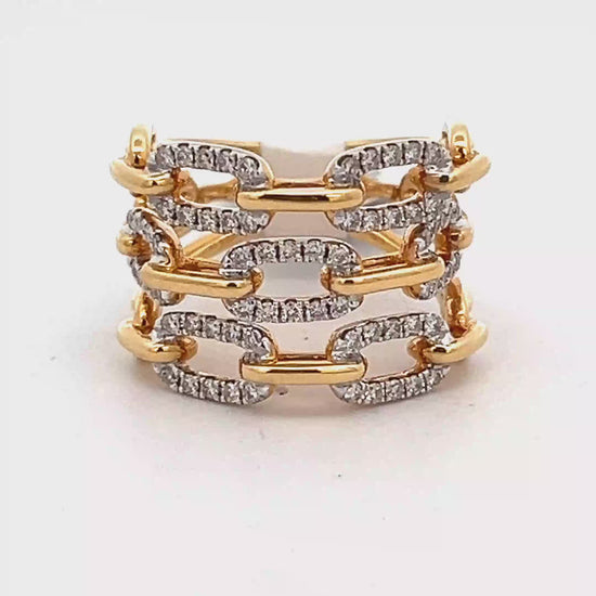 Lady's Yellow 18 Karat 3 Row Link Fashion Ring Size 6.5 With = 0.54Twt Round Diamonds (9.6gr)