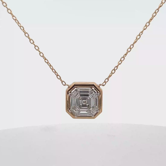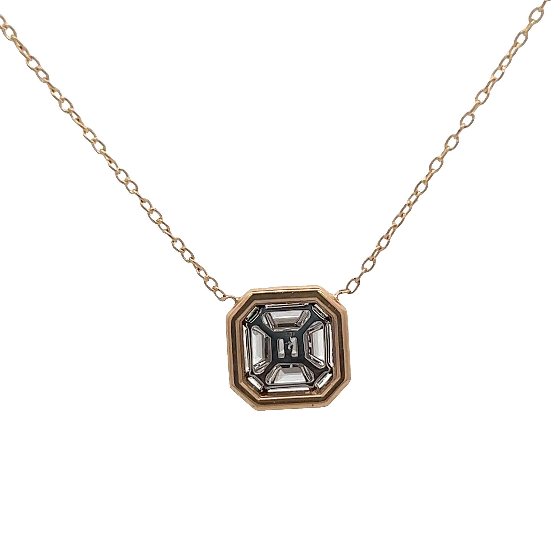 Elevate your style with this exquisite diamond necklace. Featuring a square-shaped, step-cut diamond set in a delicate rose gold base, this necklace exudes sophistication and modern elegance. Its fine composition and arrangement make it a timeless piece for any occasion.