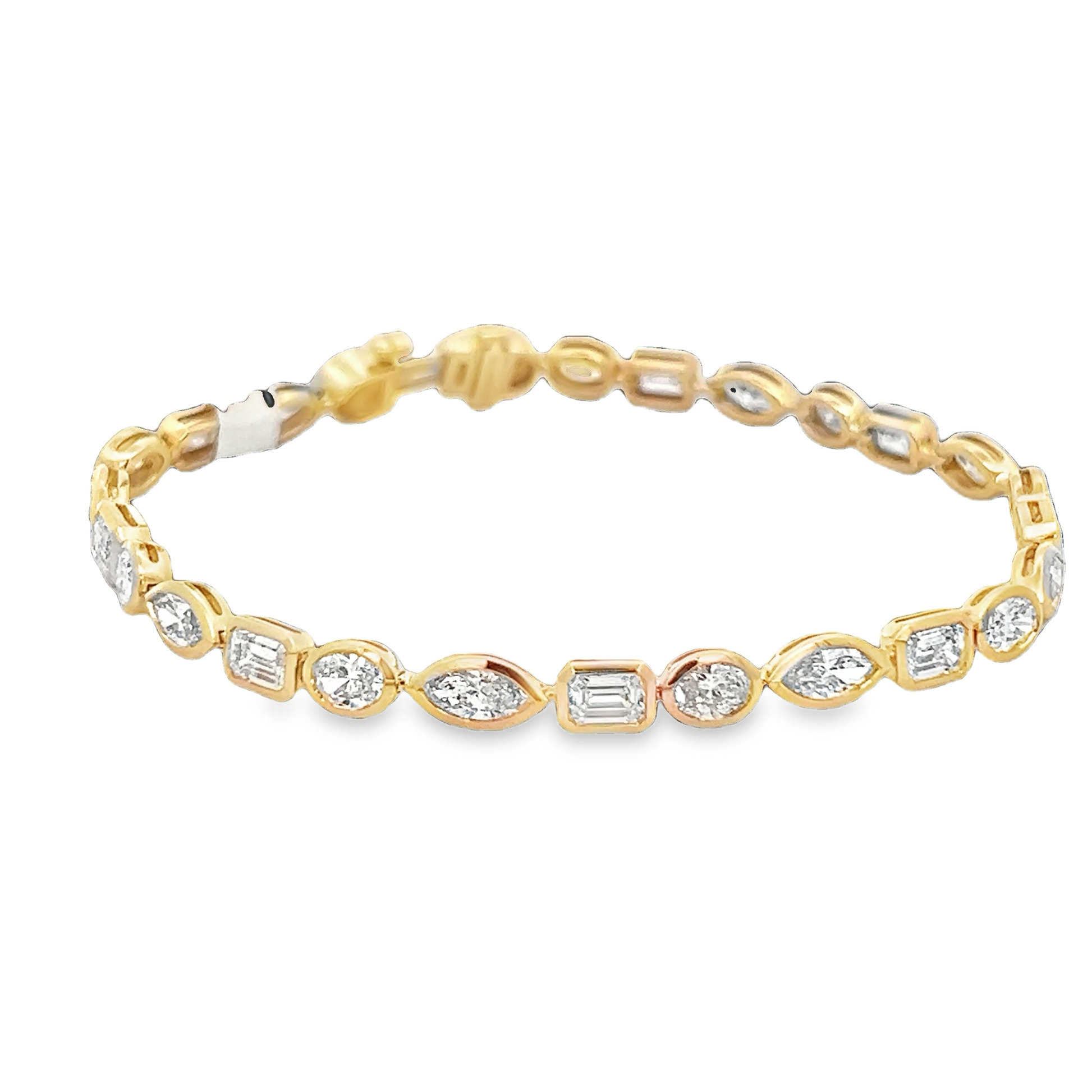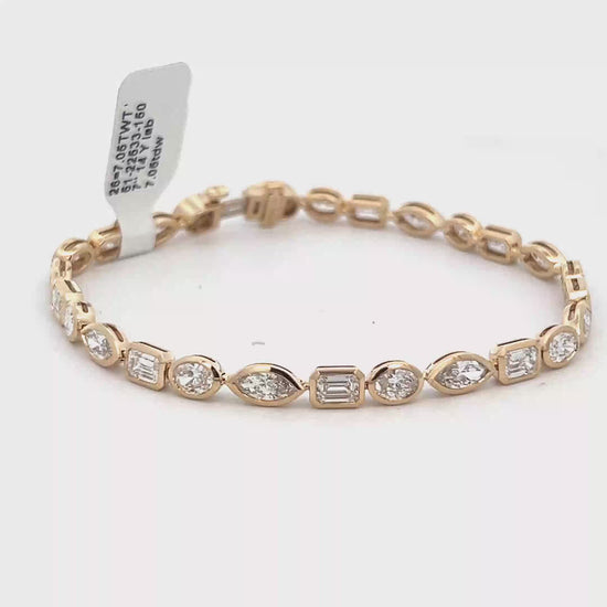 Lady's Yellow 14 Karat Lab Grown Diamond Bezeled Tennis Bracelet Length 7" With 26 = 7.05Twt Various Shapes E Vs1 Diamonds (10.6gr)