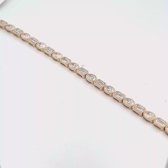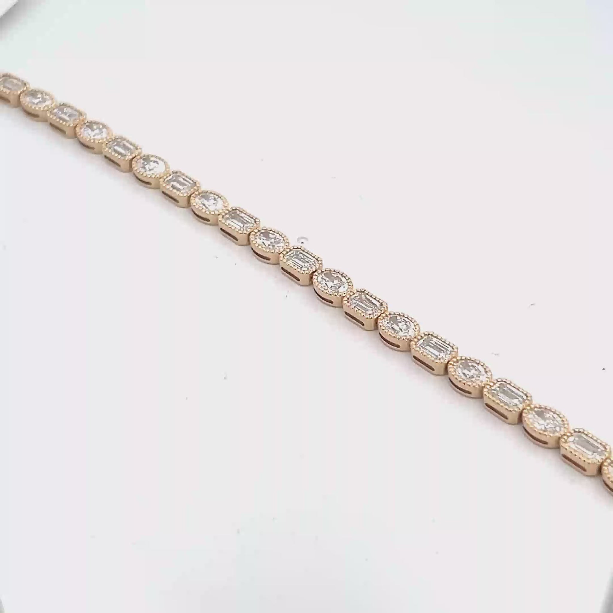 Indulge in the captivating allure of this diamond bracelet, meticulously crafted in radiant rose gold. Each brilliant-cut diamond is carefully set to maximize its sparkle and fire, creating a dazzling display of light. This timeless piece adds a touch of sophistication and elegance to any ensemble.