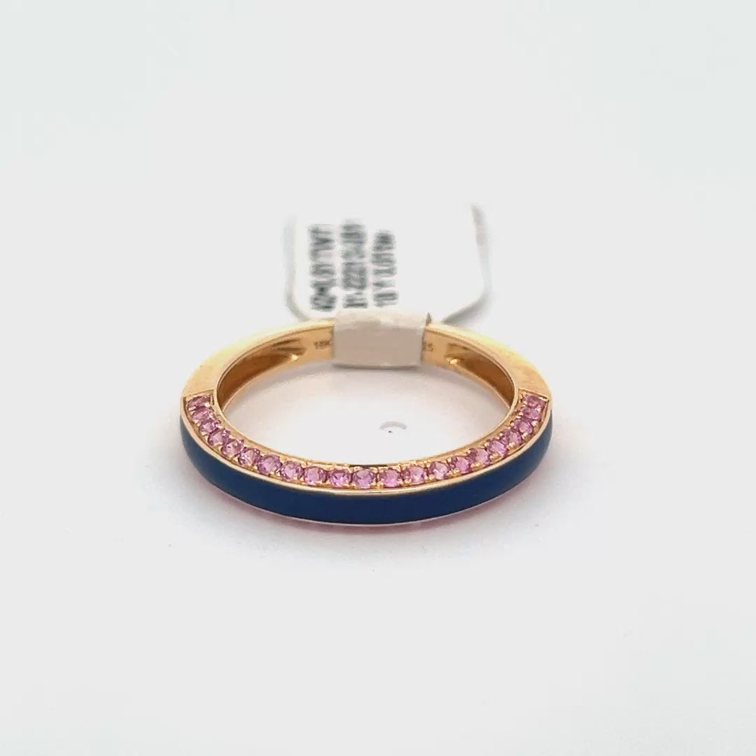 Lady's Yellow 18 Karat Blue Enamel And Pink Sapphire Fashion Ring 42=0.51tw Round Pink Sapphires