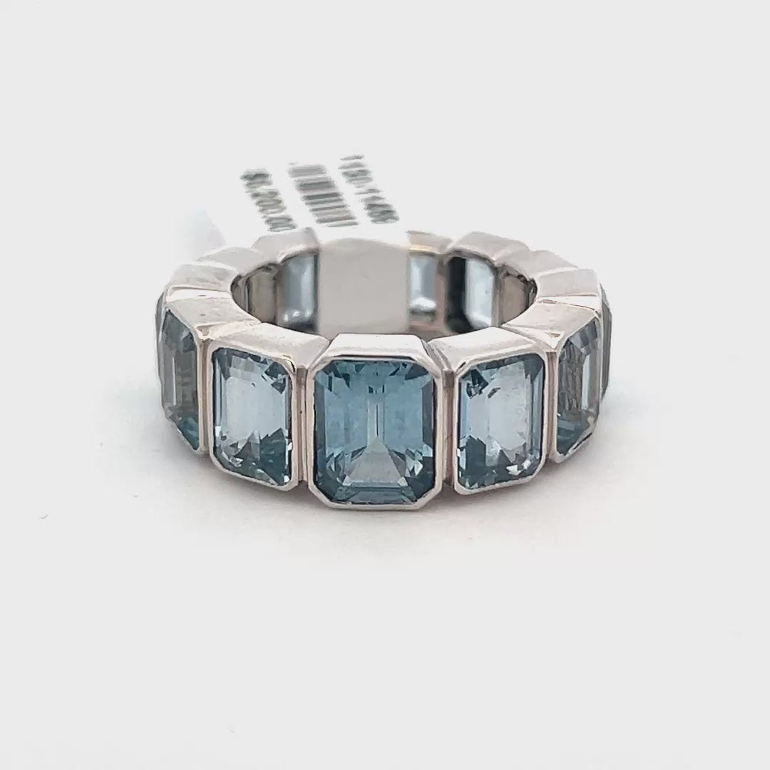 Lady's White 18 Karat Graduated Eternity Bezel Set Fashion Ring With 13=13.09Tw Emerald Blue Topaz (10.2gr)
