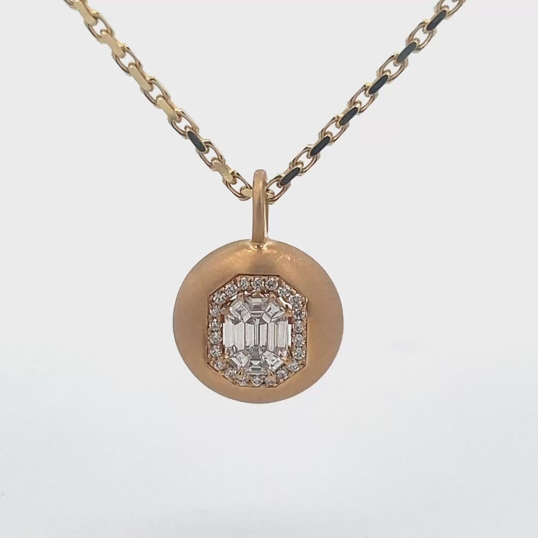 Discover the allure of this stunning gold pendant necklace, featuring a beautifully crafted round pendant adorned with sparkling diamonds. Perfect for any occasion, this piece adds a touch of elegance and sophistication to your outfit.
