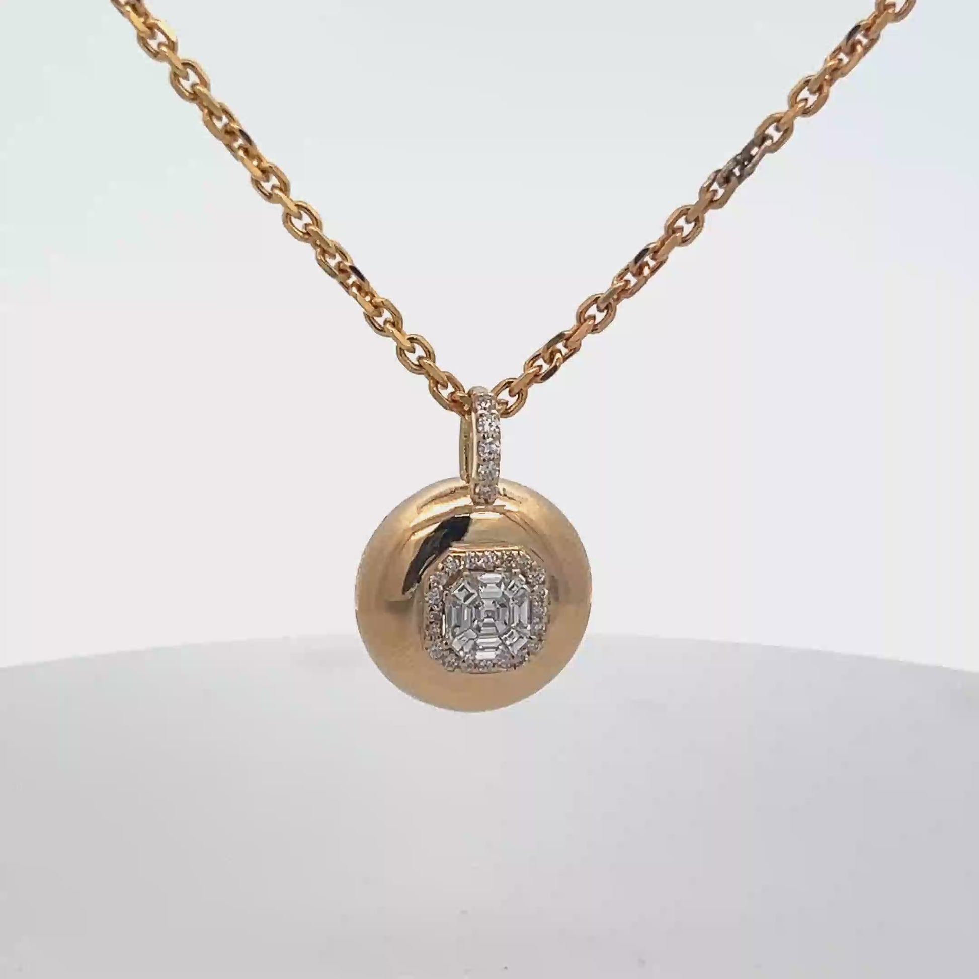 Lady's Yellow 18 Karat Bubble Illusion With Halo Pendant With 50 = 0.45Twt Round Diamonds And 25 = 0.20Twt Round Diamonds (6.9gr)