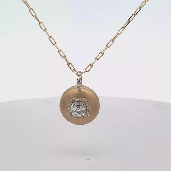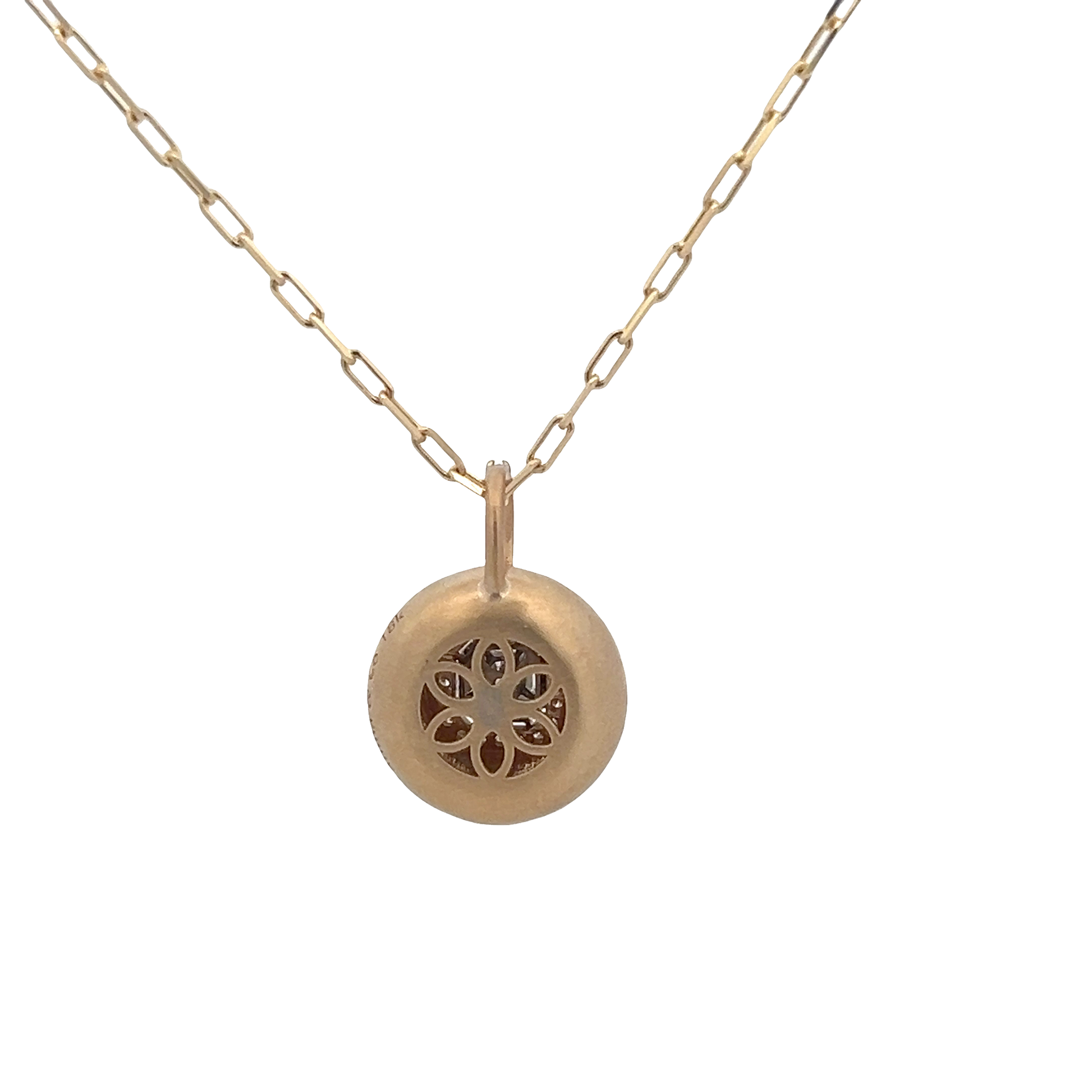 Lady's Yellow 18 Karat Bubble Illusion With Halo Pendant With 50 = 0.45Twt Round Diamonds And 25 = 0.20Twt Round Diamonds (6.9gr)