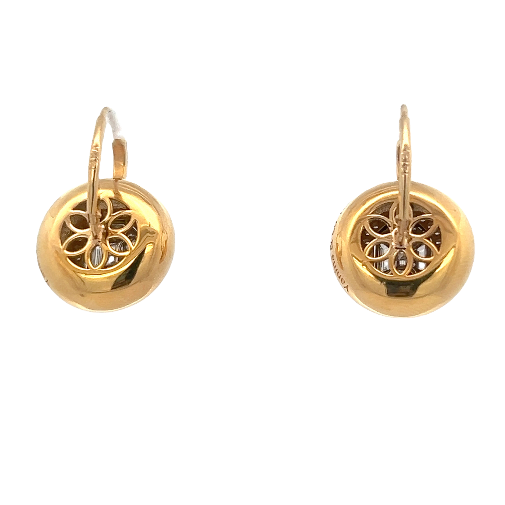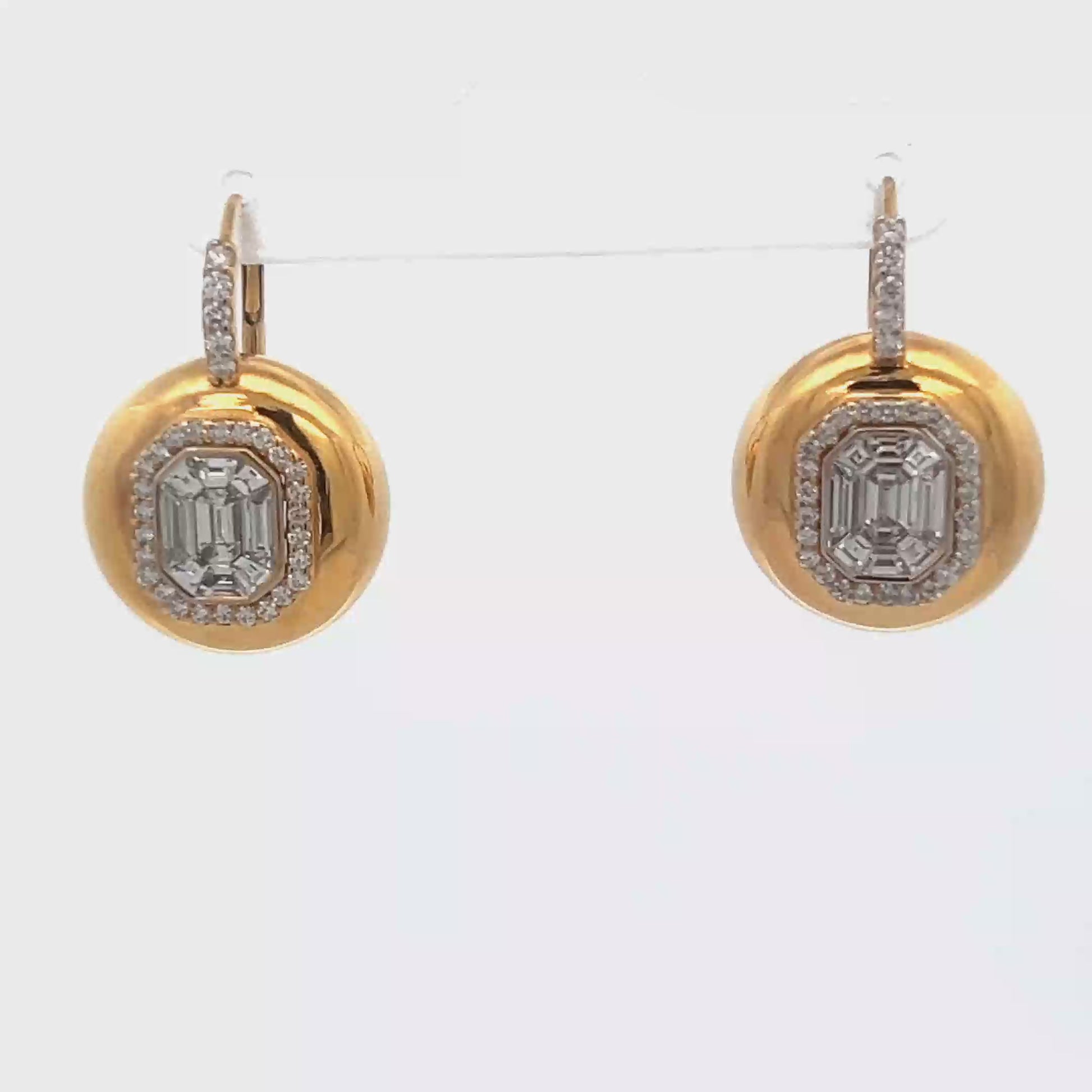 Lady's Yellow 18 Karat Bubble Illusion With Halo Earrings With 18=1.07Tw Various Shapes Diamonds And 62=0.52Tw Round Diamonds (14gr)