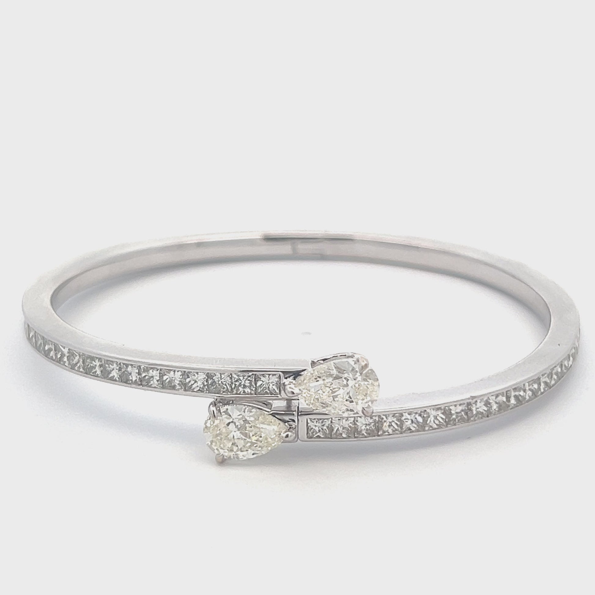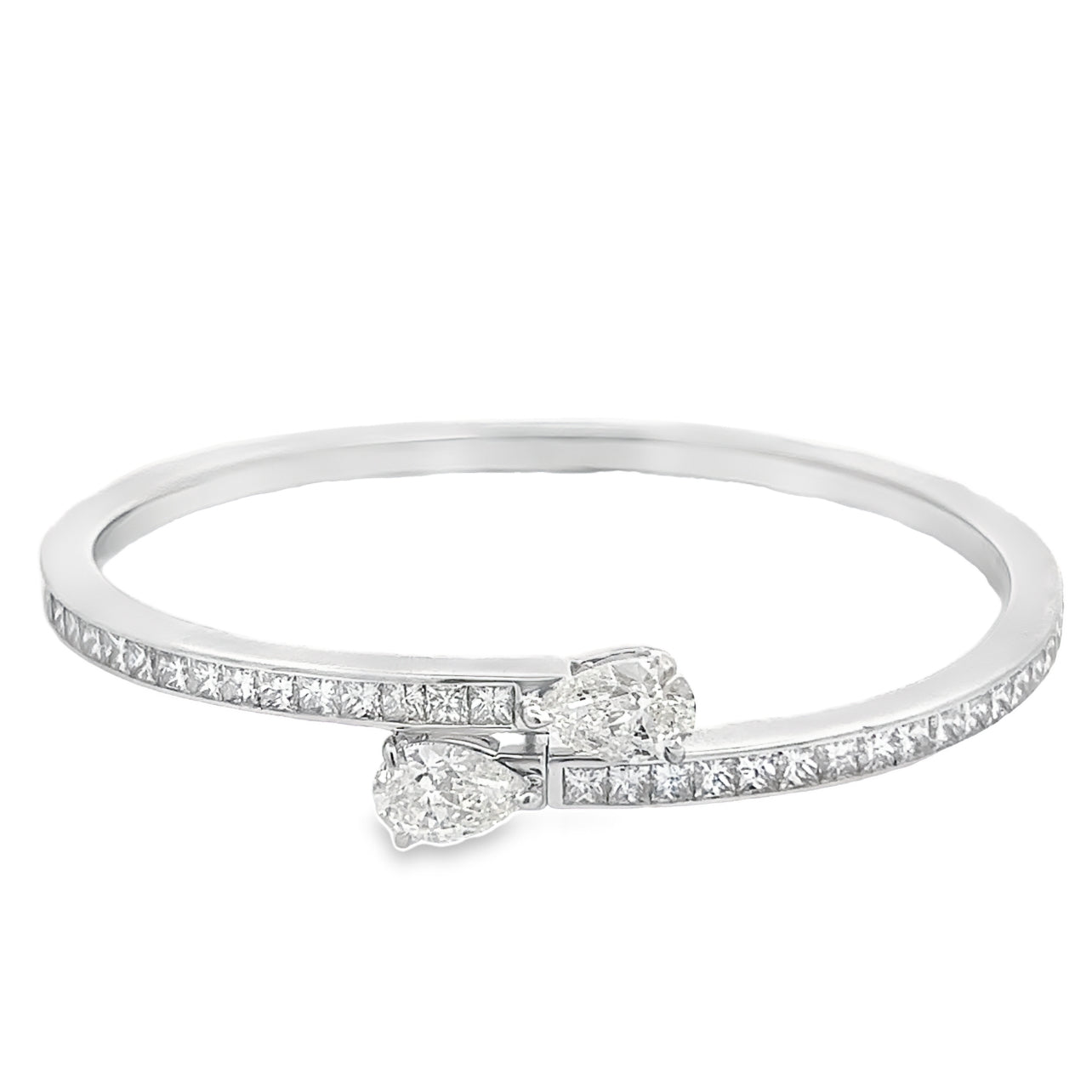 White Gold 18 Karat Bypass Bangle Bracelet with 1 (1.04ct) and 1 (1.00ct) Pear Diamonds with 72 (5.52Tw) Round Diamonds