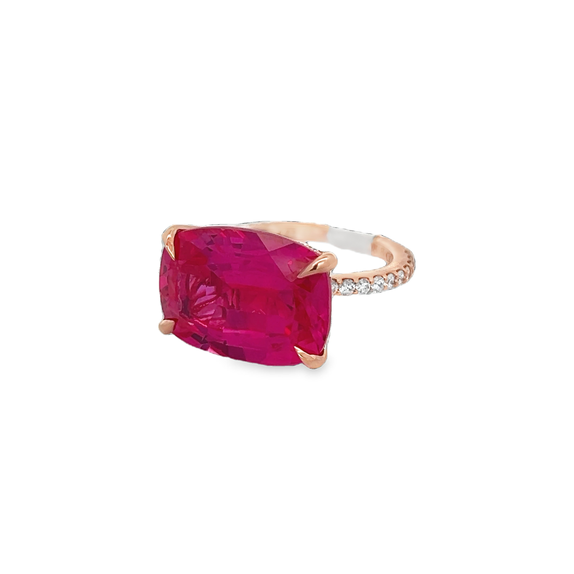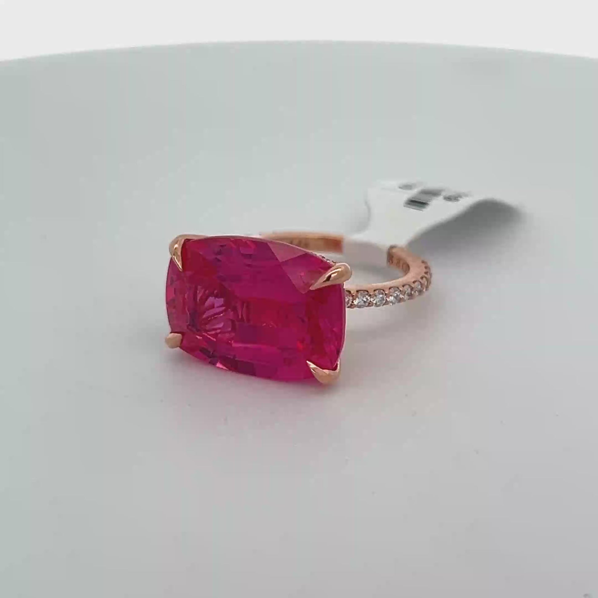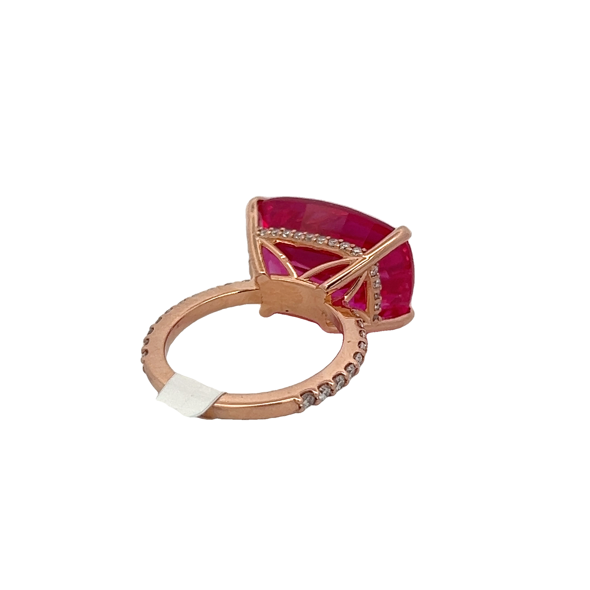 Lady's Rose 14 Karat Fashion Ring With 46=0.60Tw Round Diamonds And One 18.80Ct Cushion Compound Tourmaline (8gr)