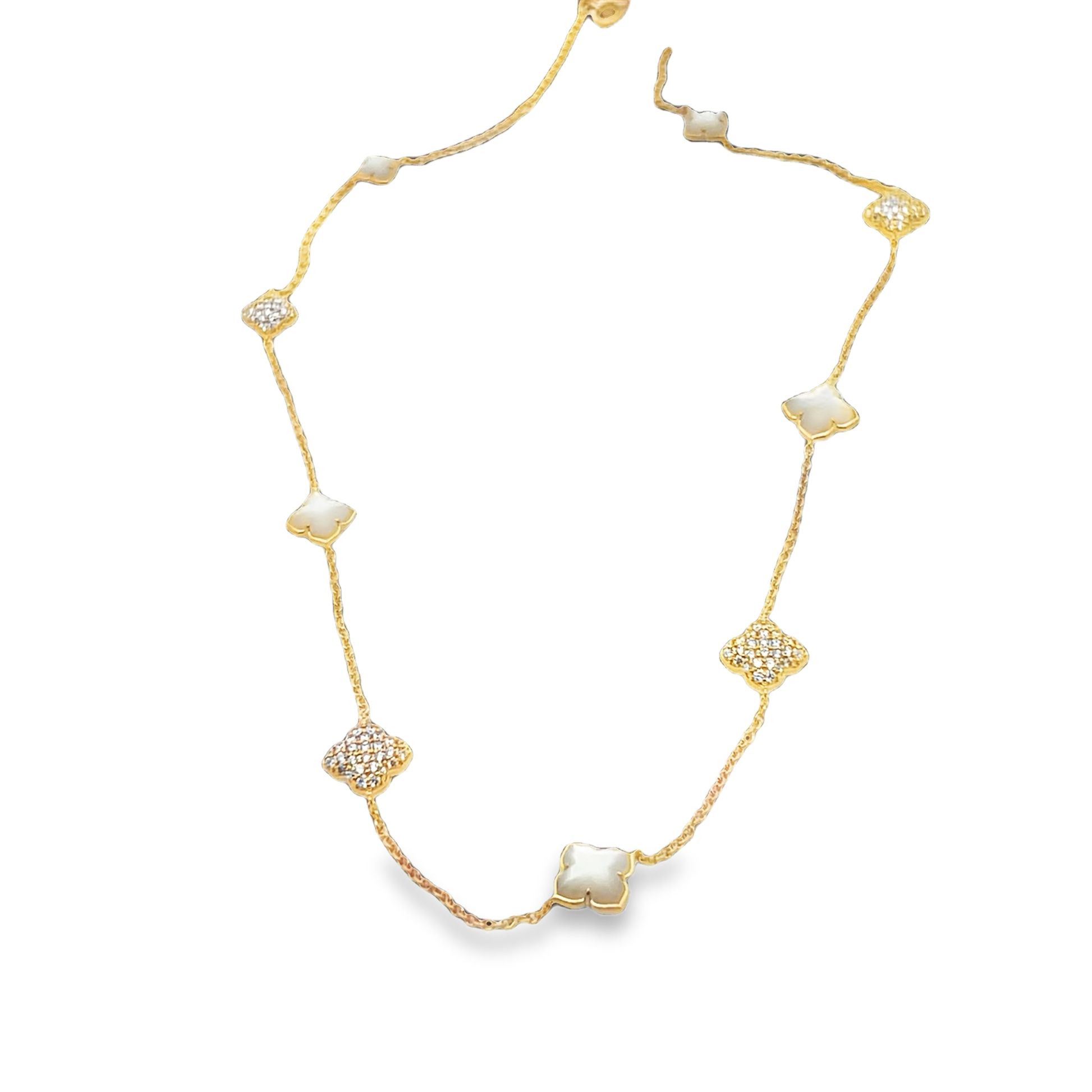 Lady's Yellow 14 Karat Diamond And Mop Clover Necklace Length 18" With = 2.03Twt Round Diamonds (9gr)