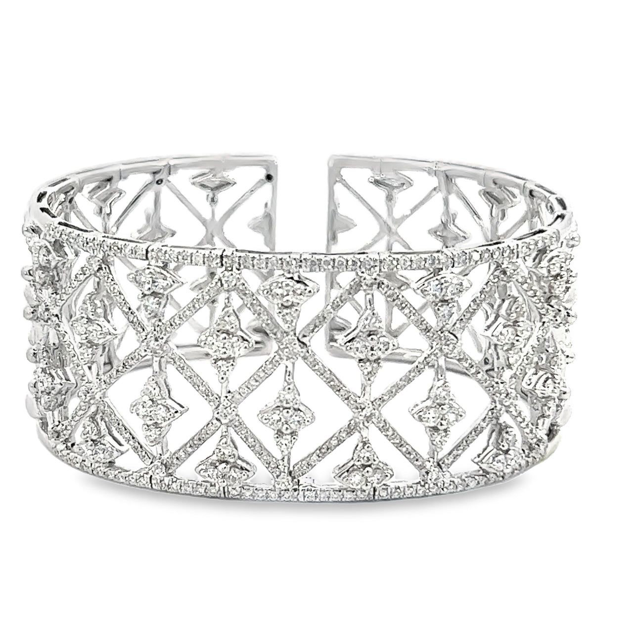 Diamonds are a girl's best friend, and this bracelet is a great way to add a little extra shine to an already beautiful outfit. The 18k white gold bracelet features three rows of diamonds that are channel set. The total diamond weight is 3.13 carats. This diamond bracelet is a great way to add a little sparkle to any outfit.