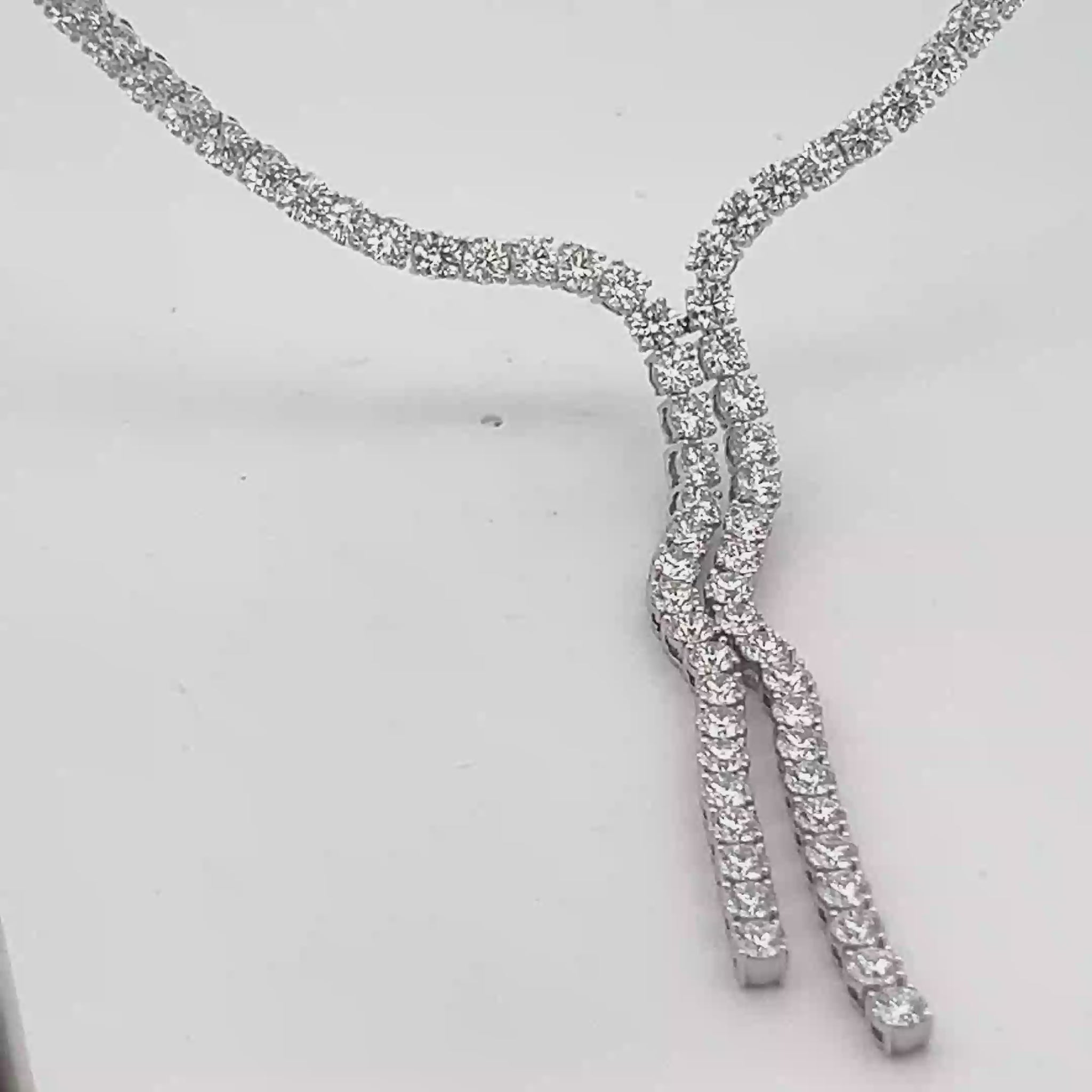 Lady's White 14 Karat Lab Growm Diamond Lariat Necklace 159 = 19.68TWT Round F VS2 Diamonds (26.4gr)