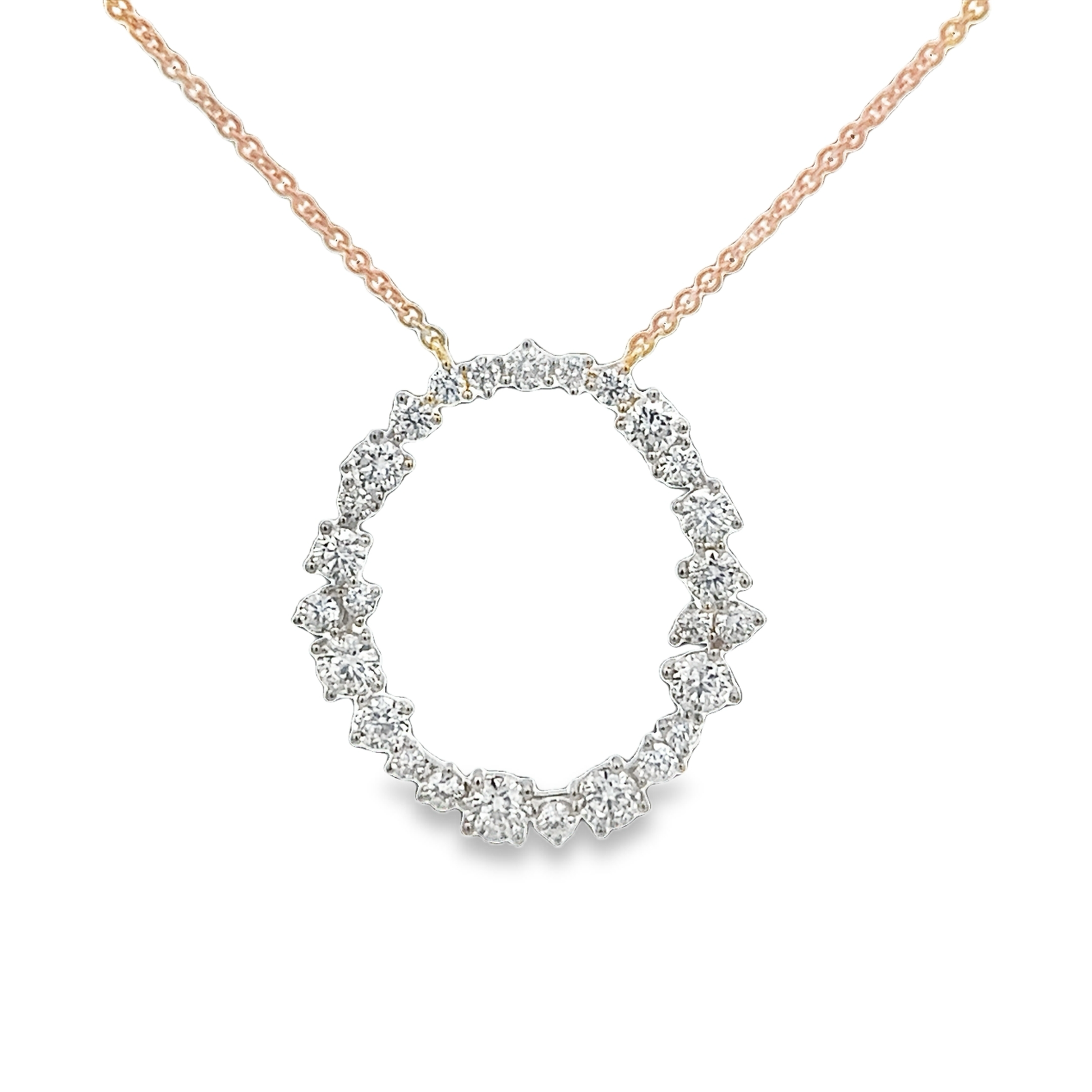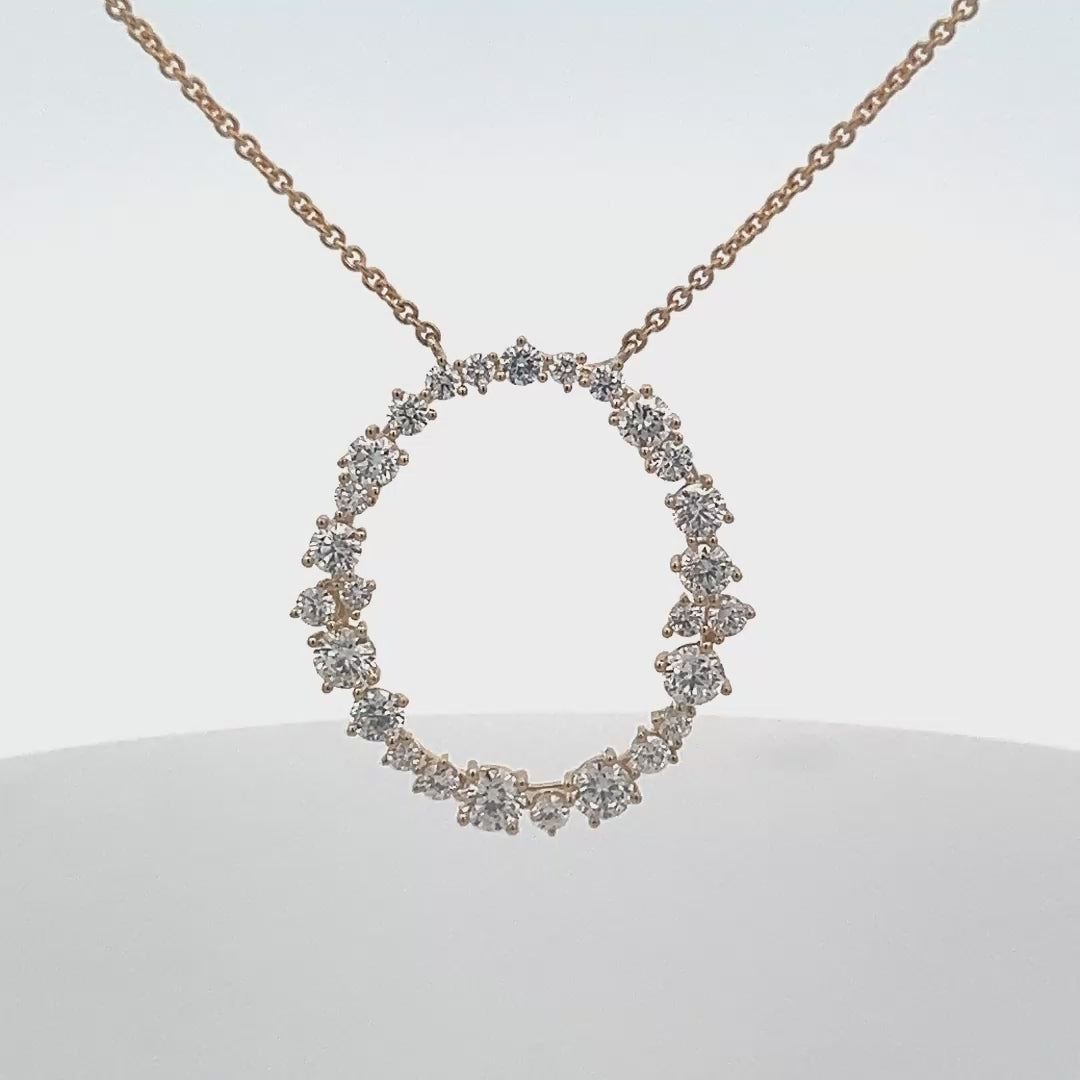 This exquisite pendant necklace features a delicate chain adorned with a stunning oval-shaped diamond arrangement. Each sparkling gem is meticulously set to create an elegant and timeless piece that adds sophistication to any outfit.