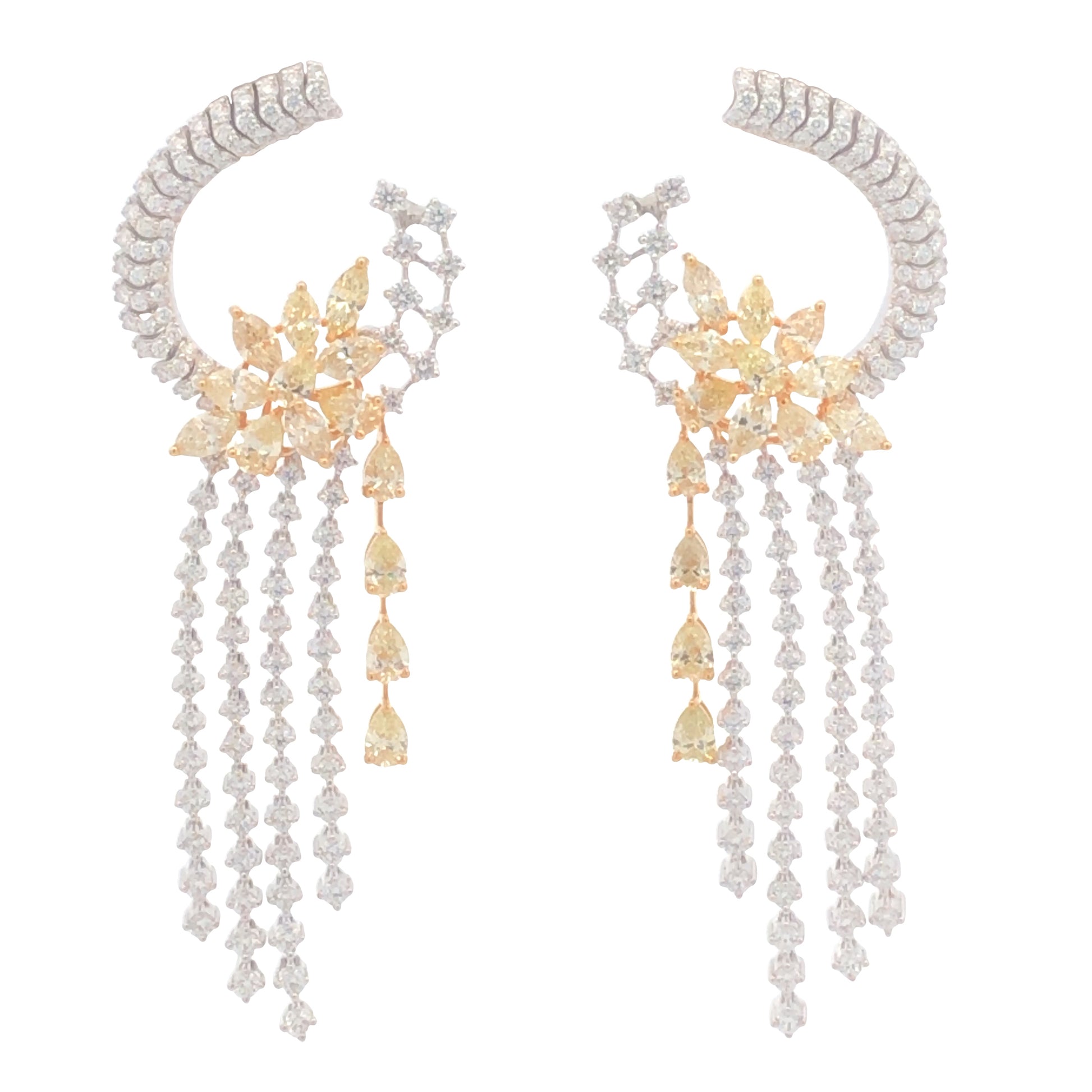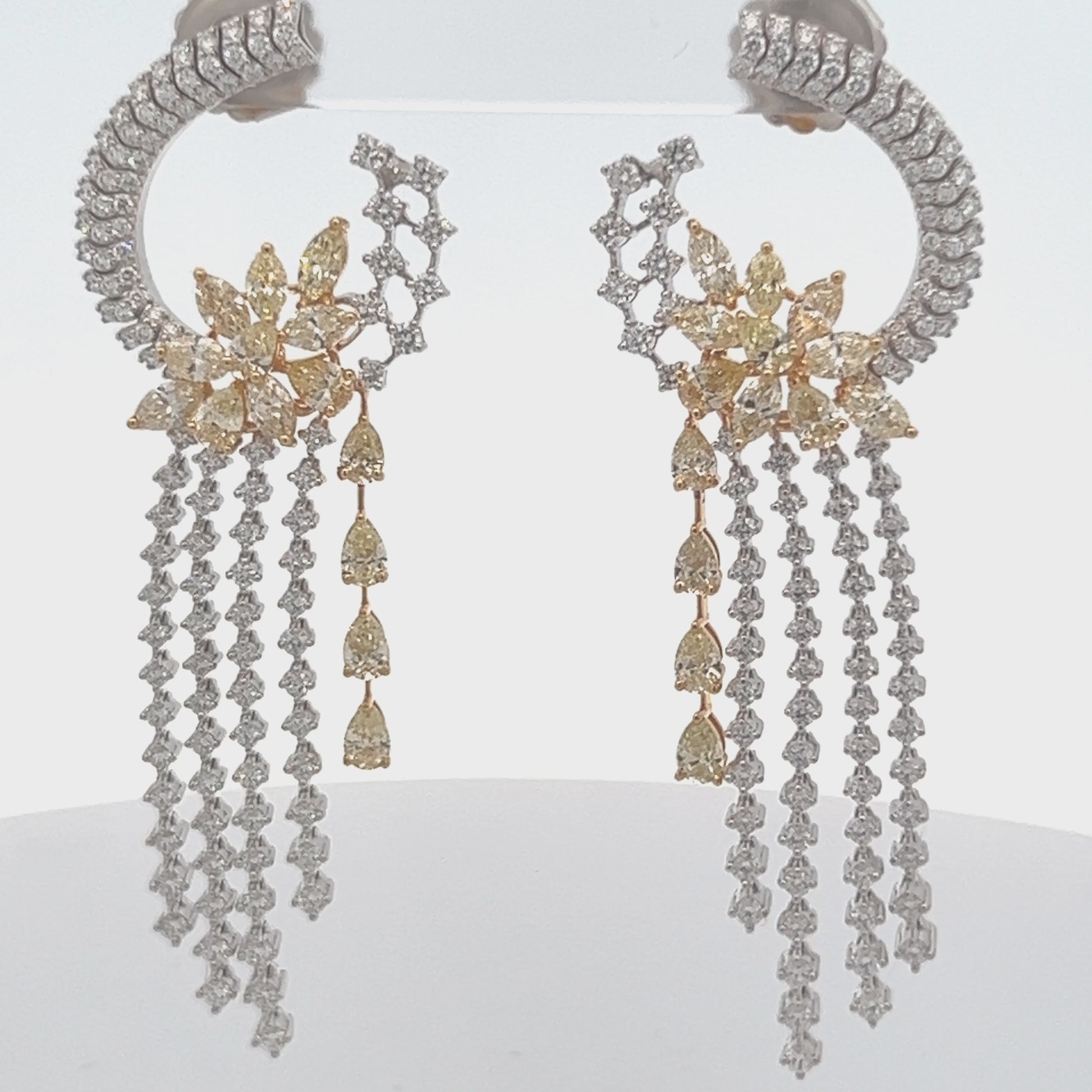White and Yellow Gold 18 Karat White and Yellow Diamond Wrap Waterfall Earrings 28 (4.52tw) Pear Yellow Diamonds 234 (3.53tw) Round Diamonds