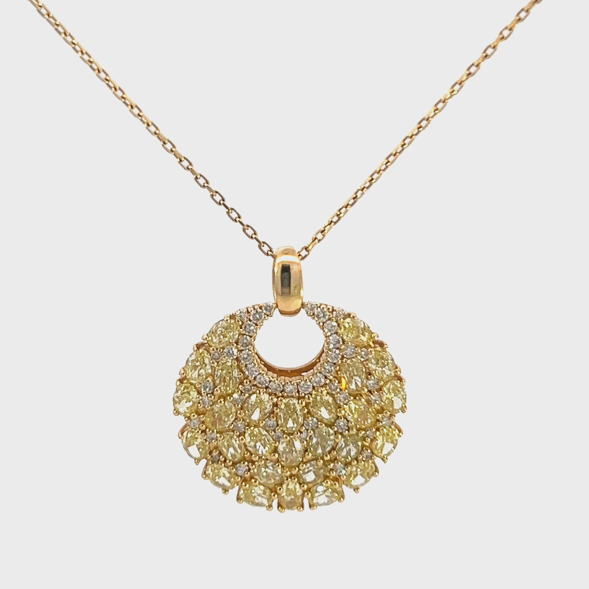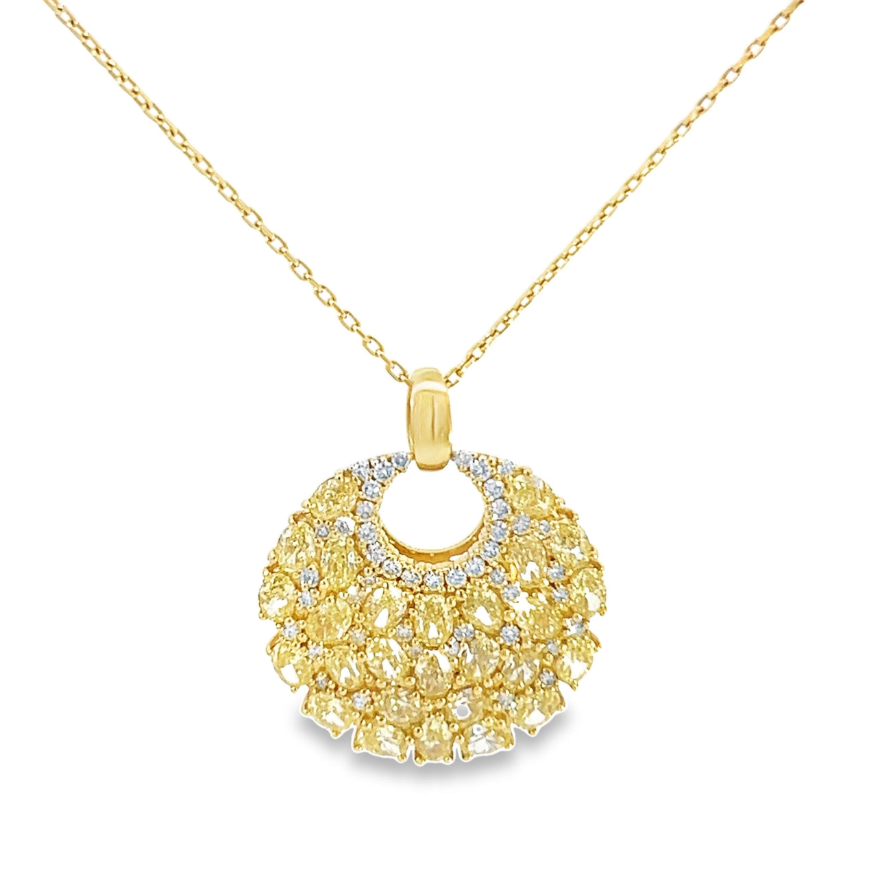 Yellow Gold 18 Karat Disc Necklace with 44 (0.33Tw) Round Diamonds and 27 (2.65Tw) Various Shapes Yellow Diamonds