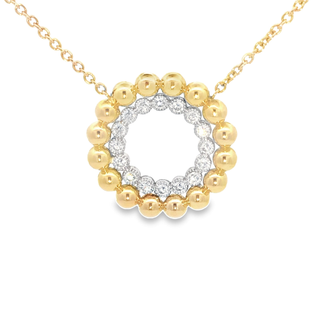 Yellow and White Gold 18 Karat Caviar Beaded Necklace with 16 (0.87Tw) Round Diamonds on a heavy cable link chain