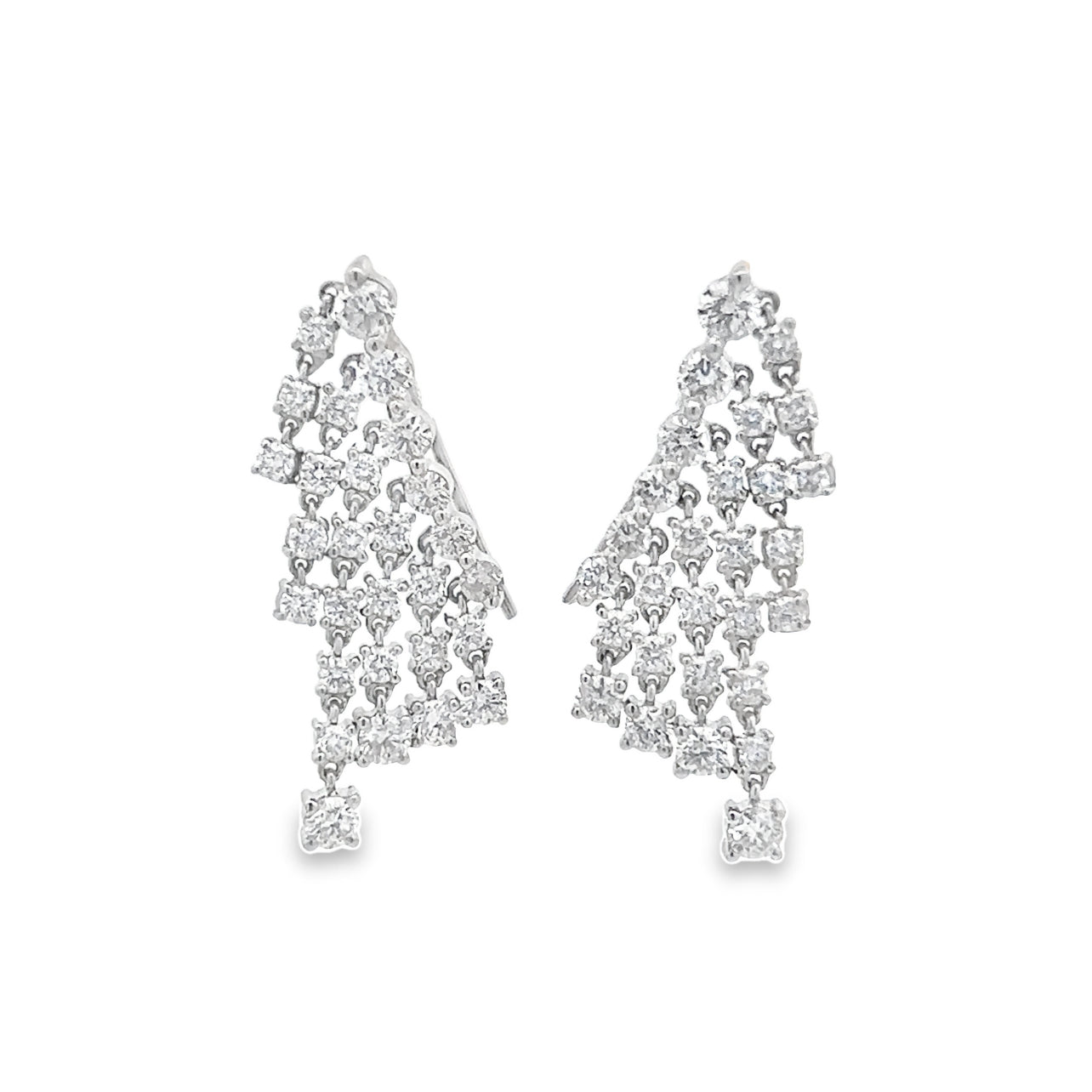 White Gold 14 Karat Waterfall Earrings with 74 (3.65Tw) Round Diamonds