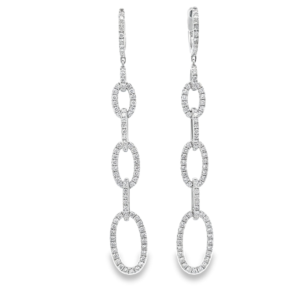 Elevate your style with these elegant dangling earrings, featuring a sophisticated chain-link design encrusted with sparkling diamonds.