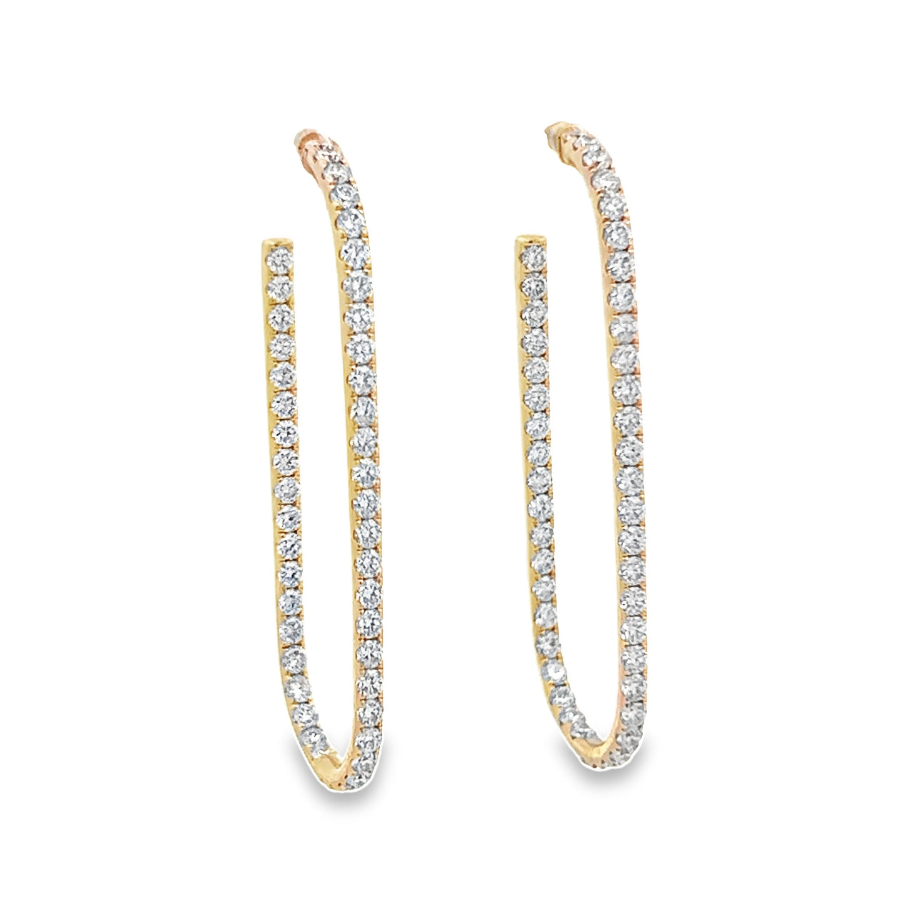 Yellow Gold 14 Karat Paperclip Hoop Earrings 92 (2.40tw) Round Diamonds