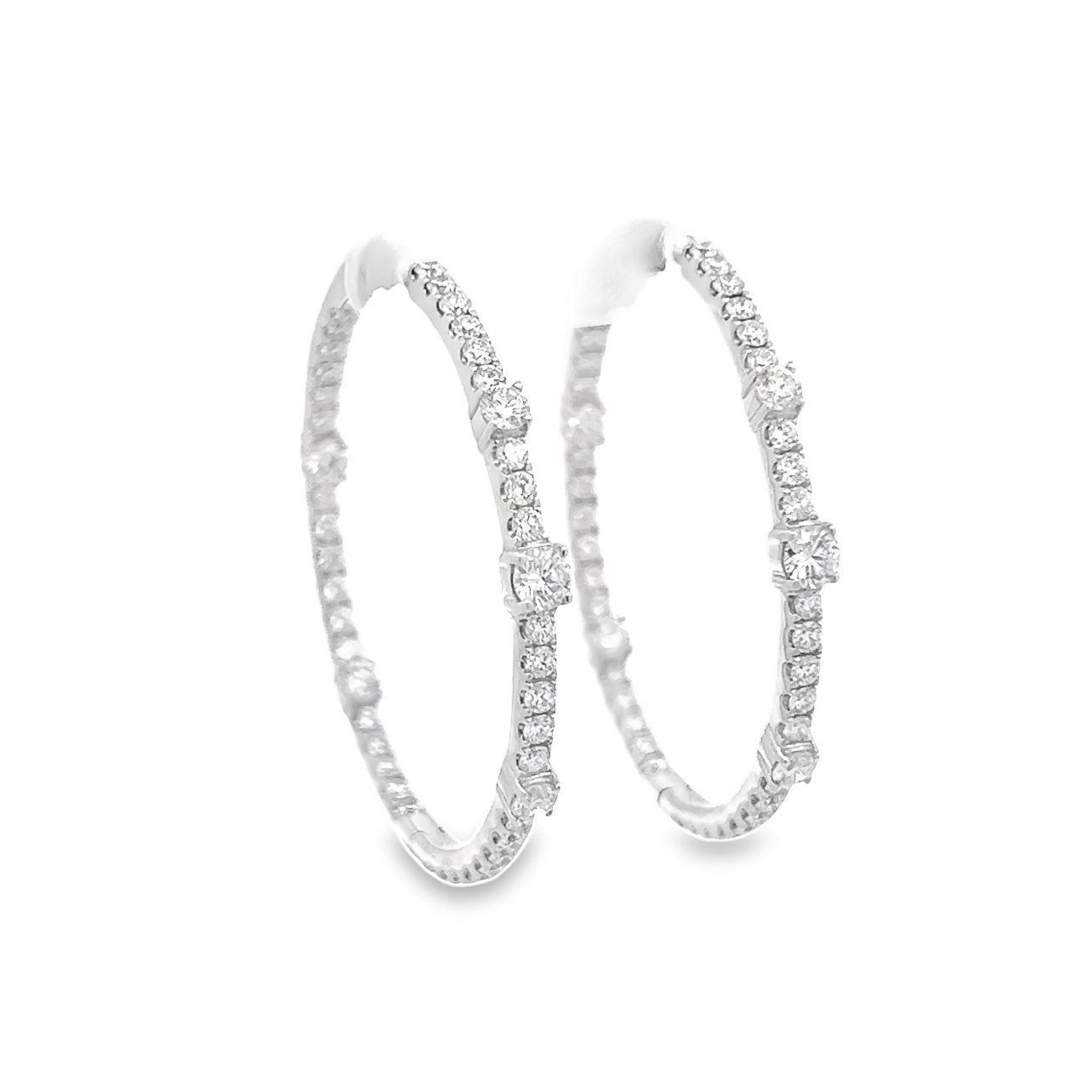 White Gold 14 Karat Inside-Out Hoops Earrings 88 (3.00tw) Round Diamonds