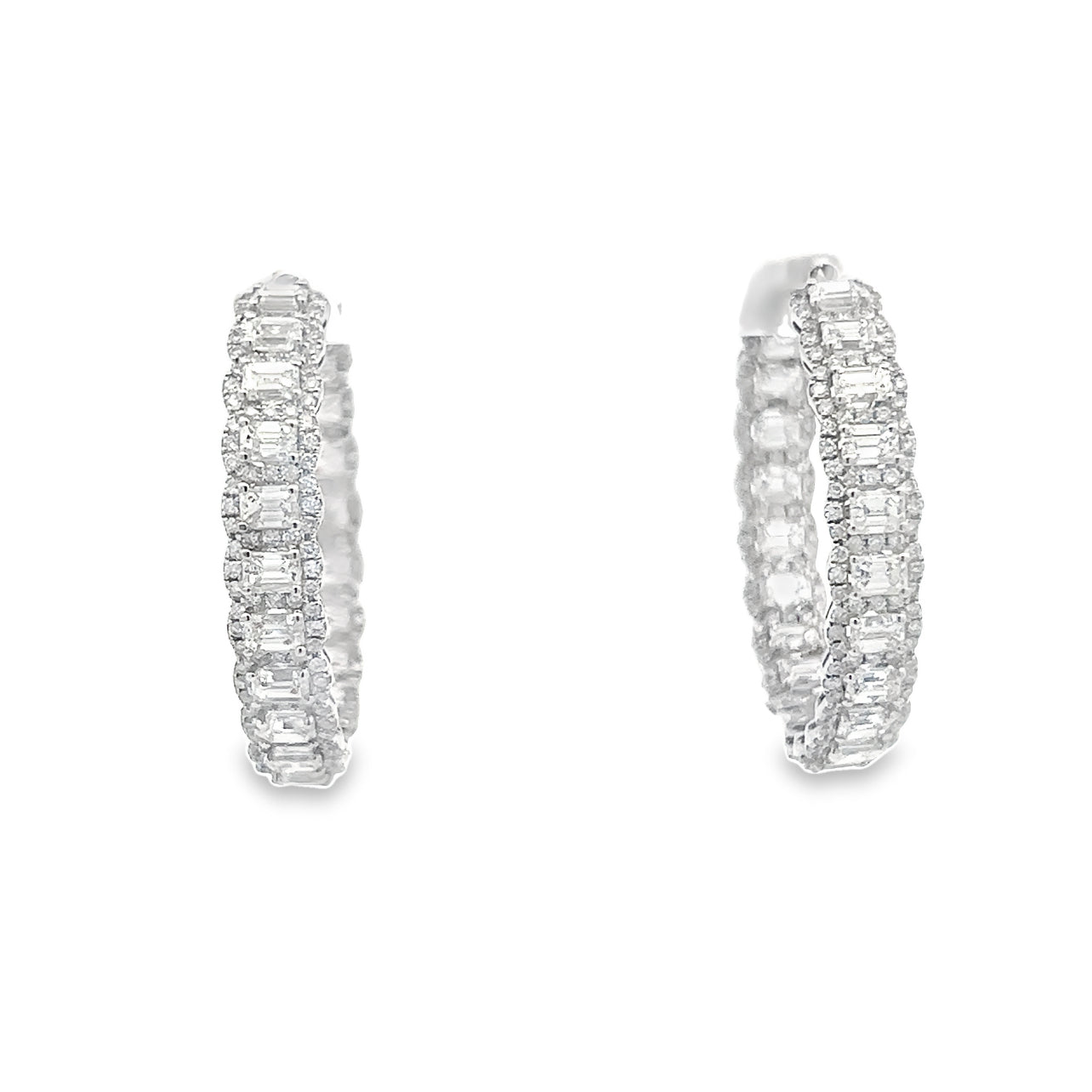 White Gold 18 Karat Round and Emerald Cut Diamond Inside Out Hoop Earrings (10.49ct)