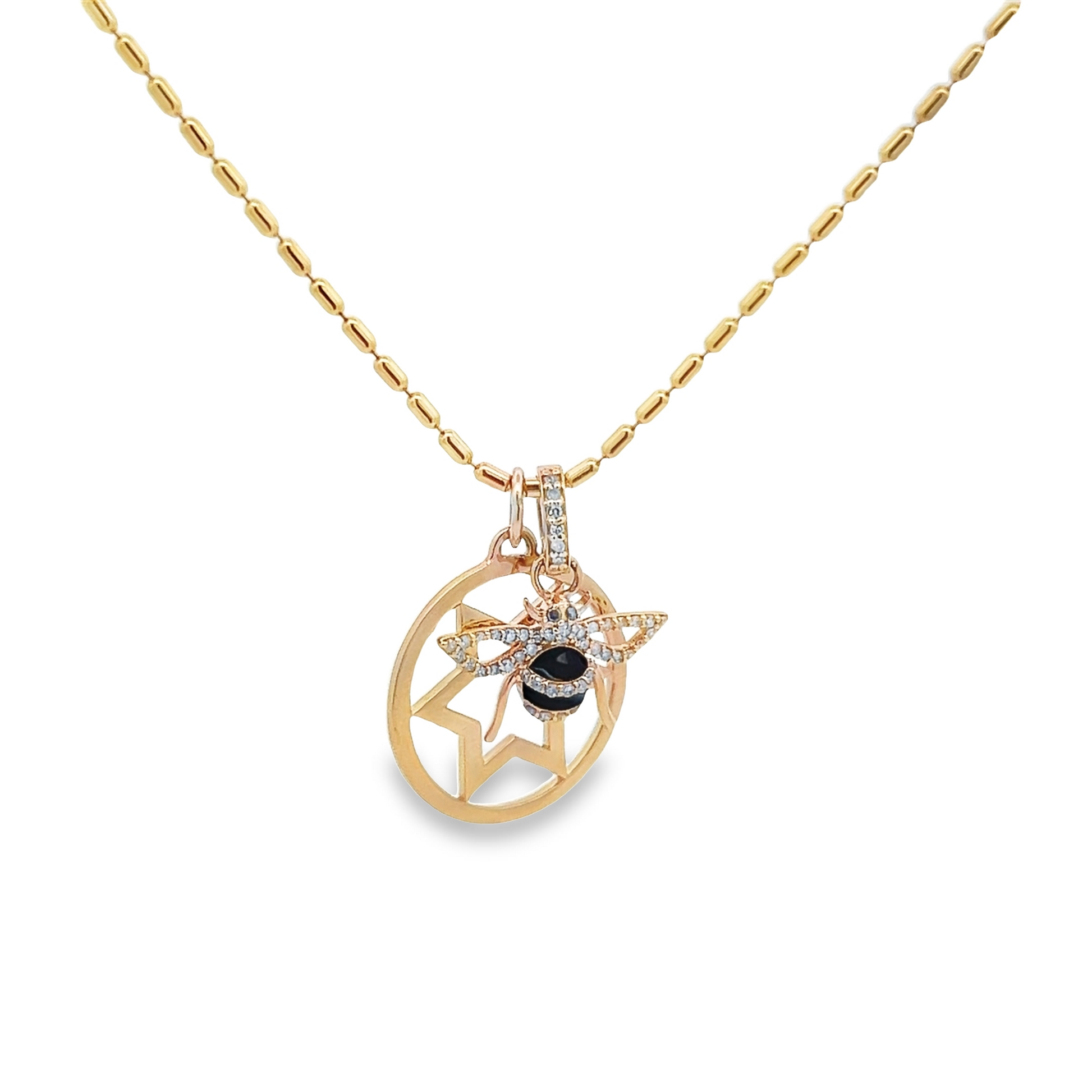 Yellow 14 Karat 1.5mm Long Bead Chain Length 18" With Star Of David Disc And Diamond Bee Pendants (8gr)