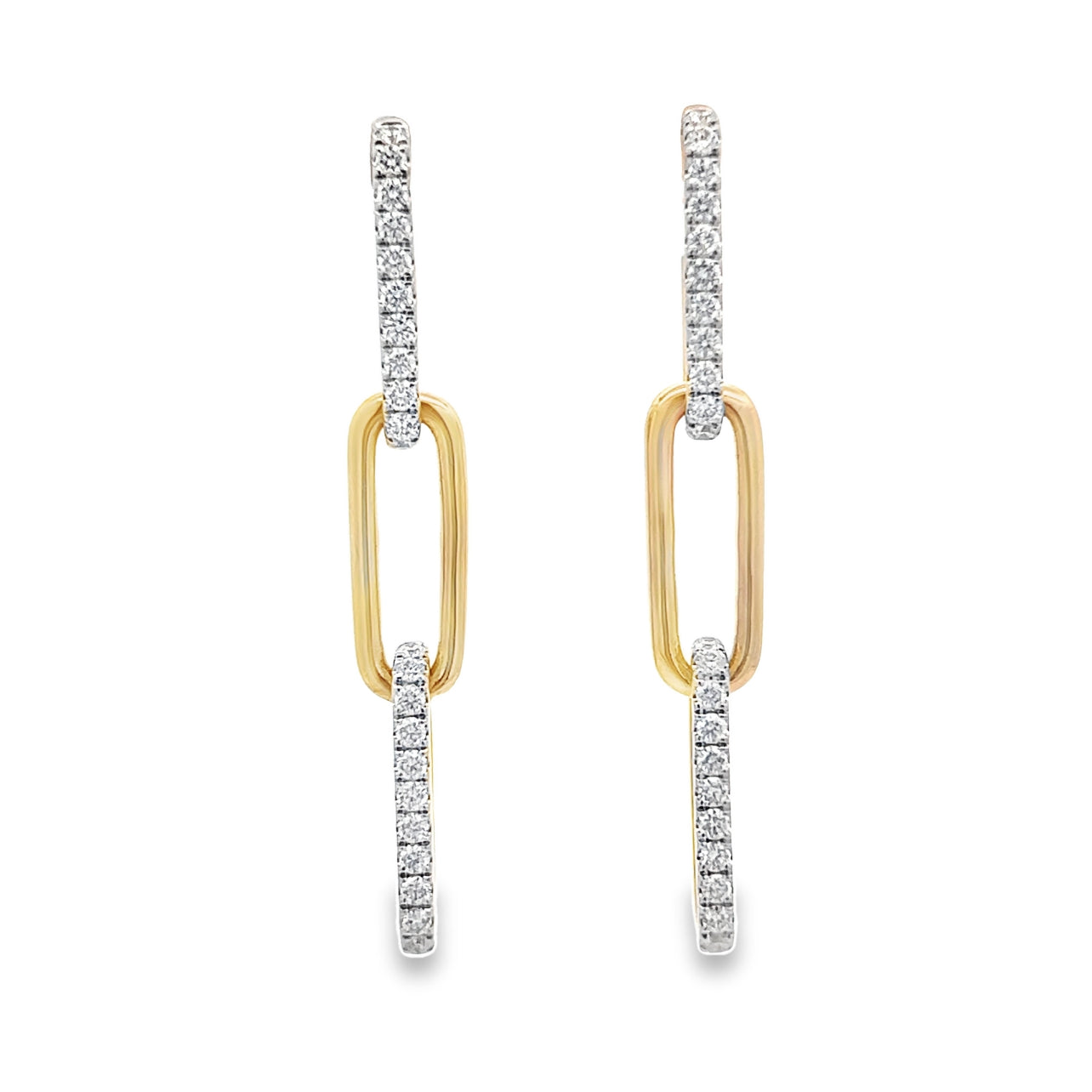 Yellow Gold 14 Karat Paperclip Diamond Earrings With 46 (1.02Tw) Round Diamonds