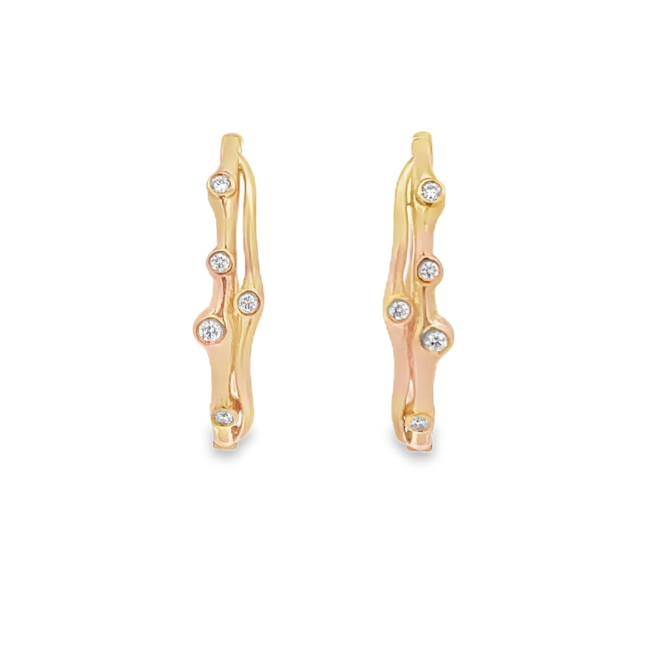 Lady's Yellow 18 Karat Satin Twisted Hoop Earrings With 10=0.30Tw Round Diamonds (8.5gr)
