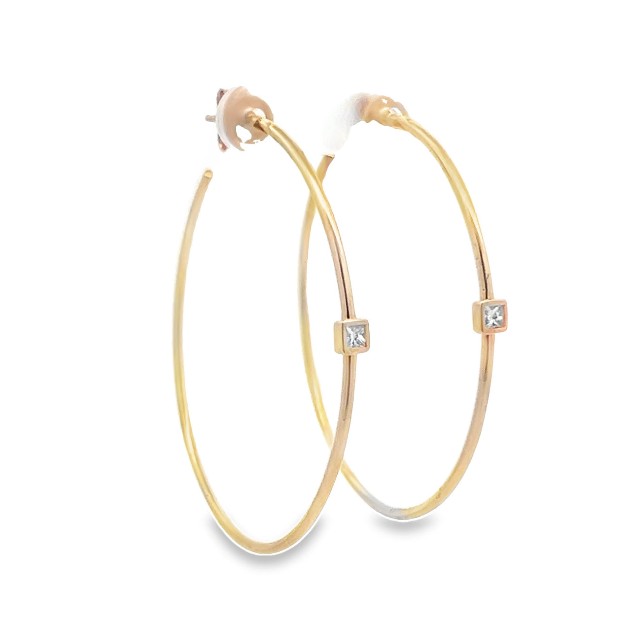 Yellow Gold 14 Karat 2" Large Hoop Earrings with 2 (0.20Tw) Princess Diamonds
