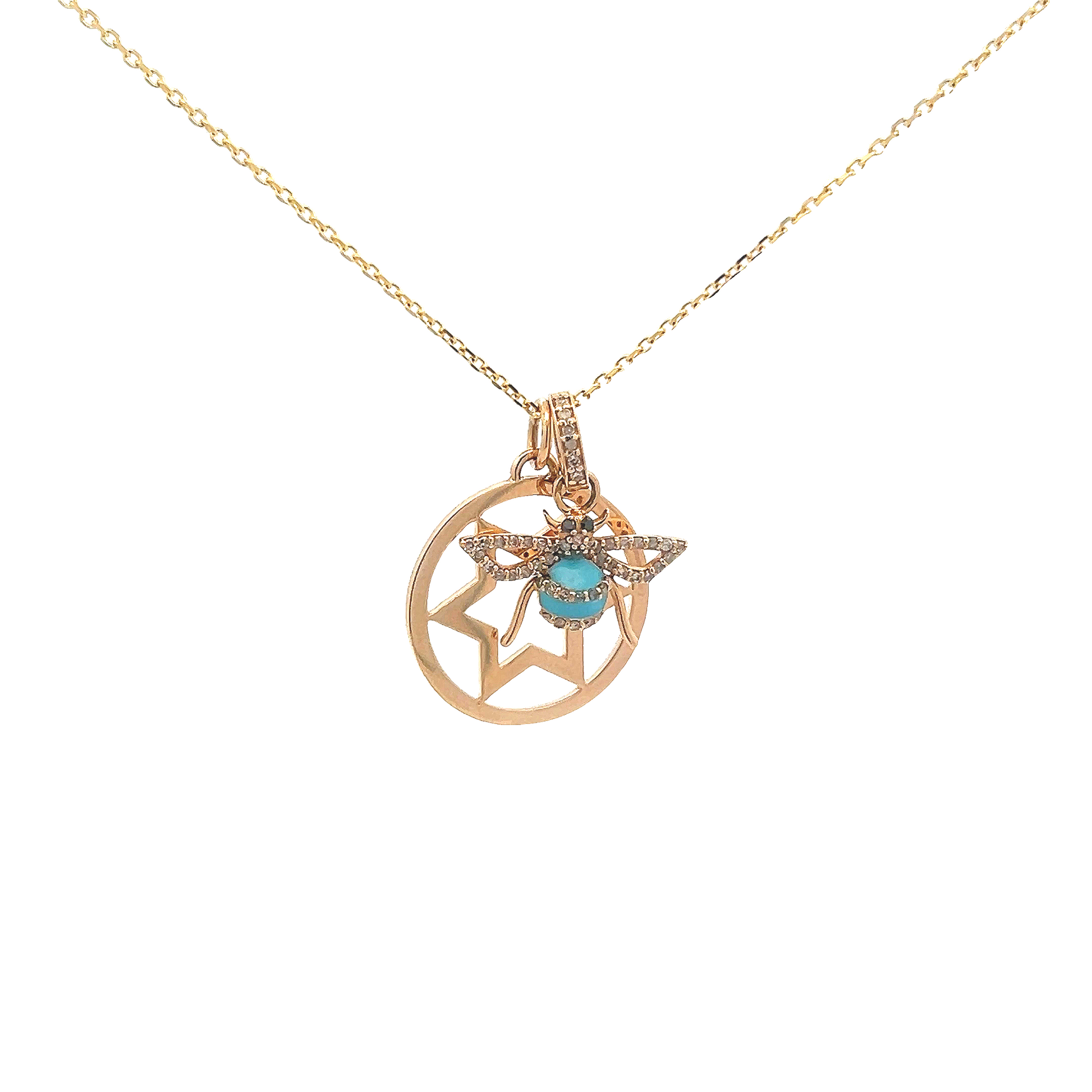 Yellow 14 Karat Diamond Cut Cable Chain Length 18" With Star Of David Disc And Diamond Bee Pendants (5.6gr)
