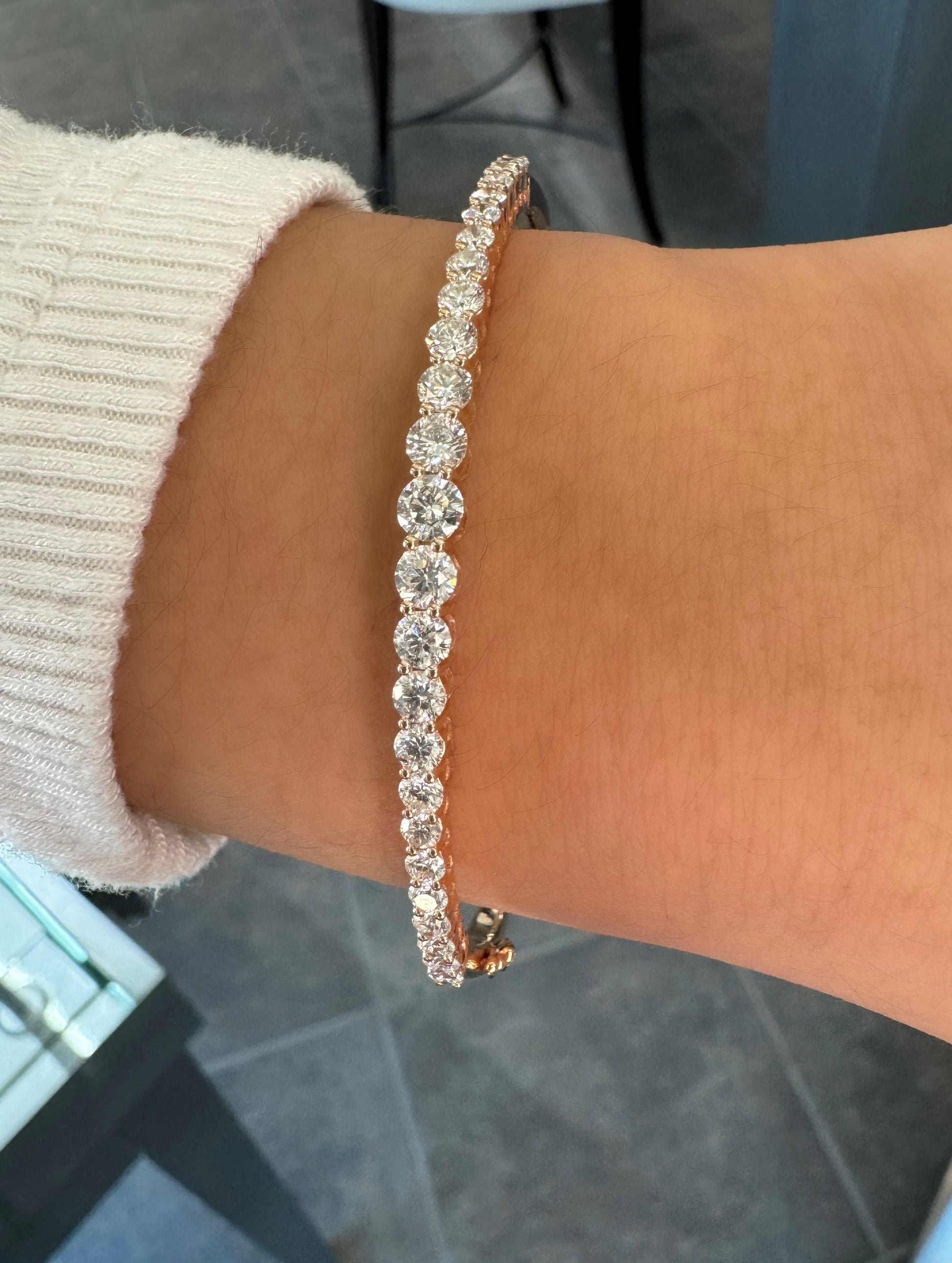 Rose Gold 14 Karat Diamond Line Bangle Bracelet set with 25rb dia 2.13ct