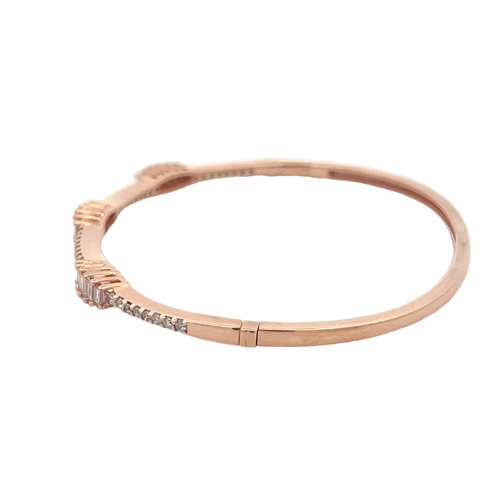 Rose Gold 14 Karat Diamond Top Bangle Bracelet with 34 Round Diamonds (.50ct) and 15 Baguette (.58ct)
