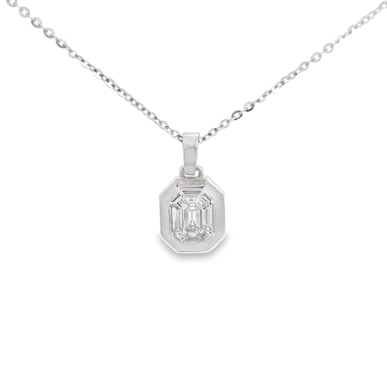 White Gold 18 Karat Satin Bezeled Diamond Illusion Pendant With 9 (1.40Tw) Various Shapes Diamonds
