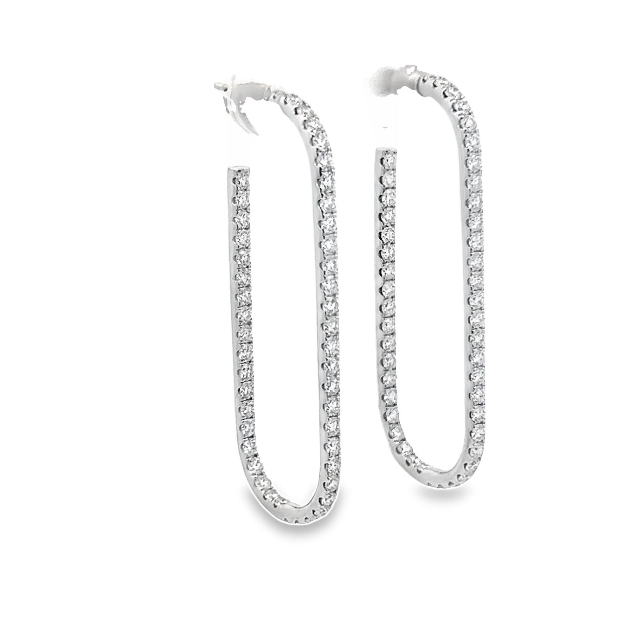 White Gold 14 Karat Paperclip Hoop Earrings 92 (2.40tw) Round Diamonds