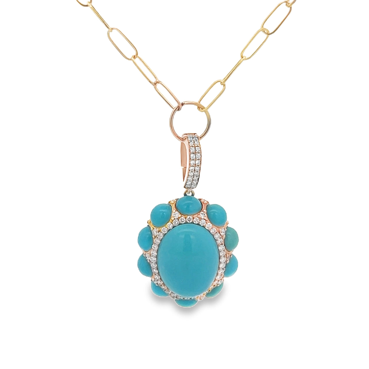 Lady's Yellow 18 Karat Turquoise Pendant 0.68tw Round Diamonds 11=12.27tw Turquoises (9.1gr)