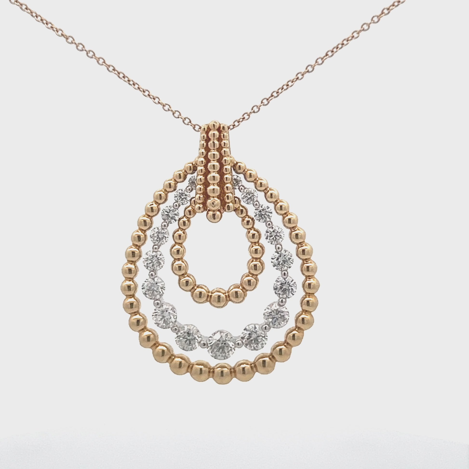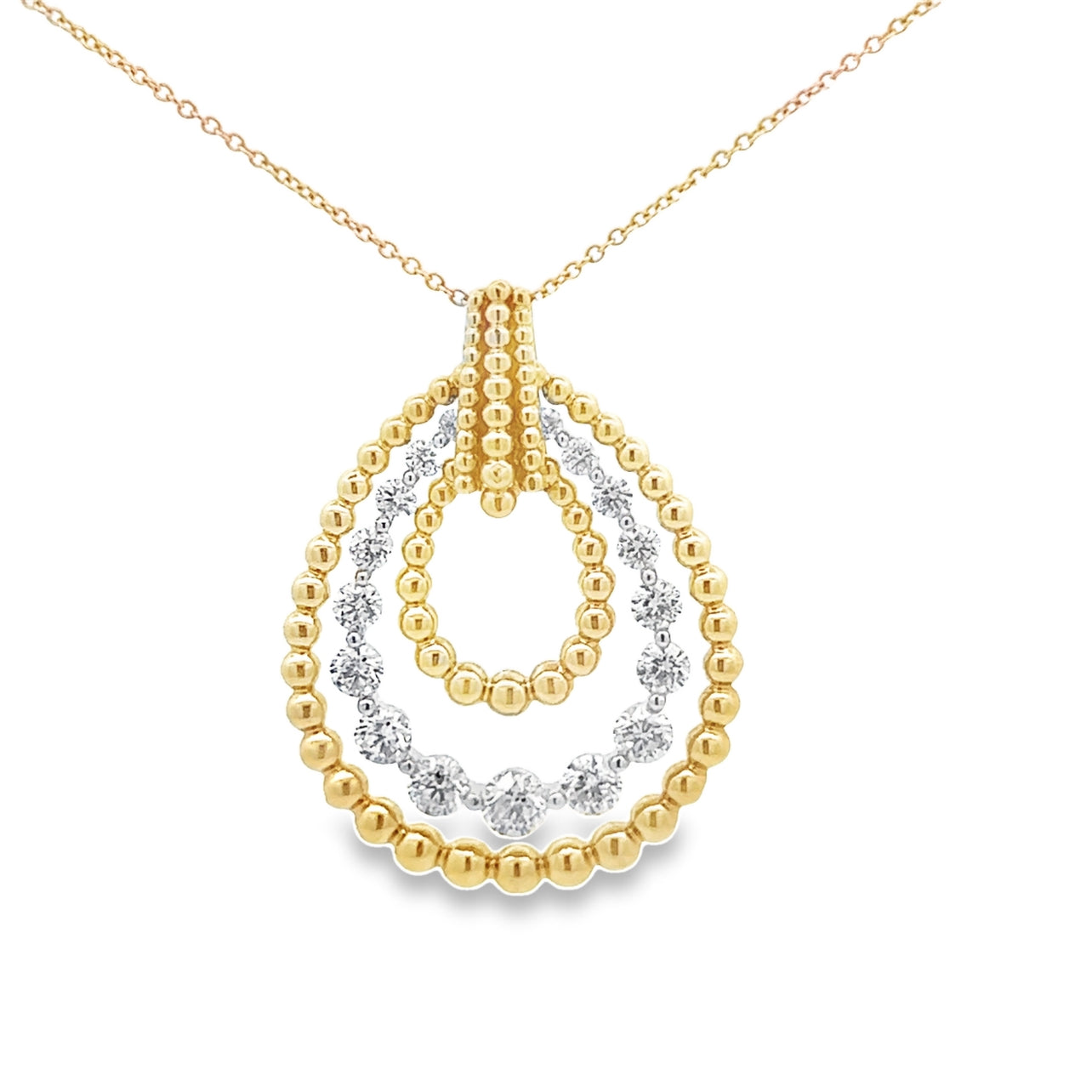 Yellow Gold 14 Karat Caviar Bead Pear Shape Pendant Necklace with 17 (1.95Tw) Round Diamonds