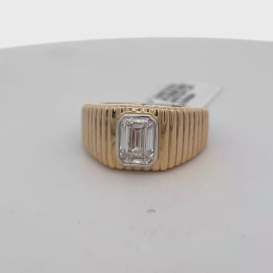 Gent's Yellow 14 Karat Lab Grown Fashion Ring With One 2.00Ct Emerald Diamond (9.7gr)