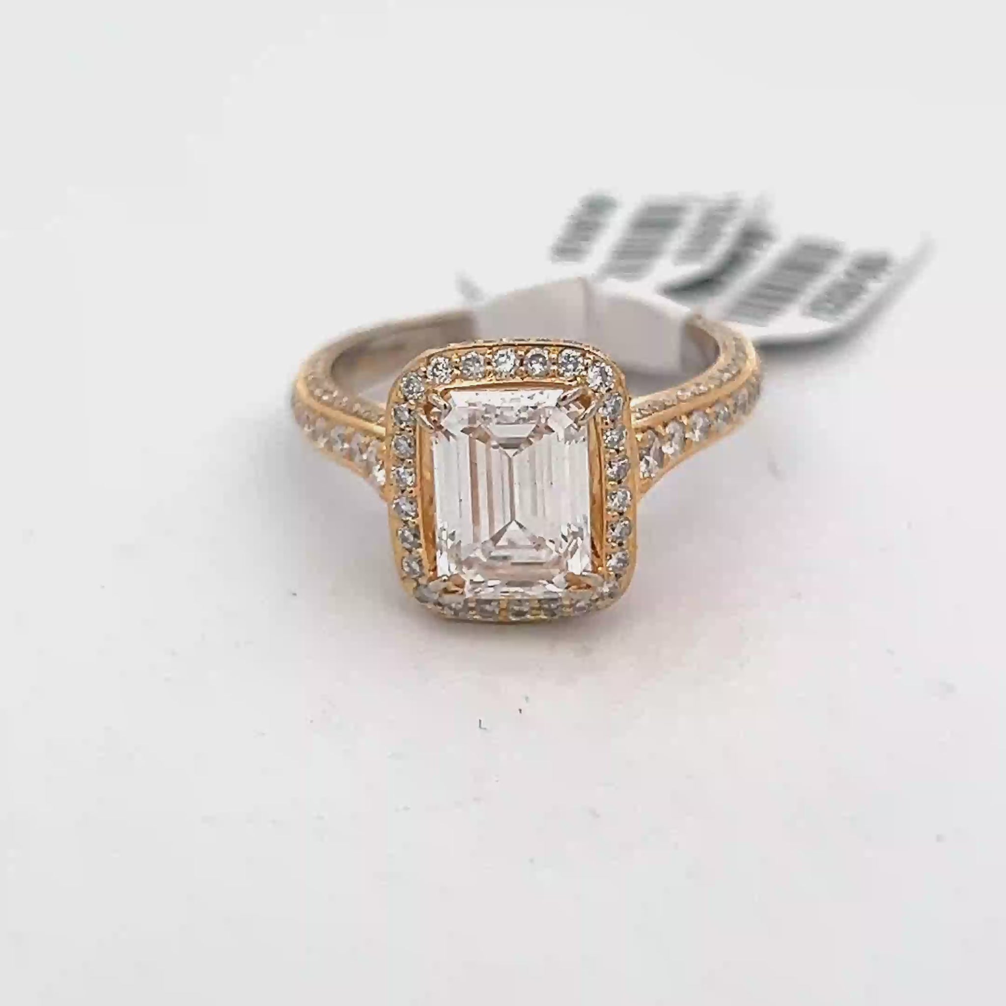 Exquisite engagement ring featuring a captivating emerald-cut diamond, known for its sleek lines and sophisticated appeal. The step-cut facets highlight the diamond's clarity. Set in warm rose gold, this ring exudes timeless elegance, ideal for a memorable proposal.