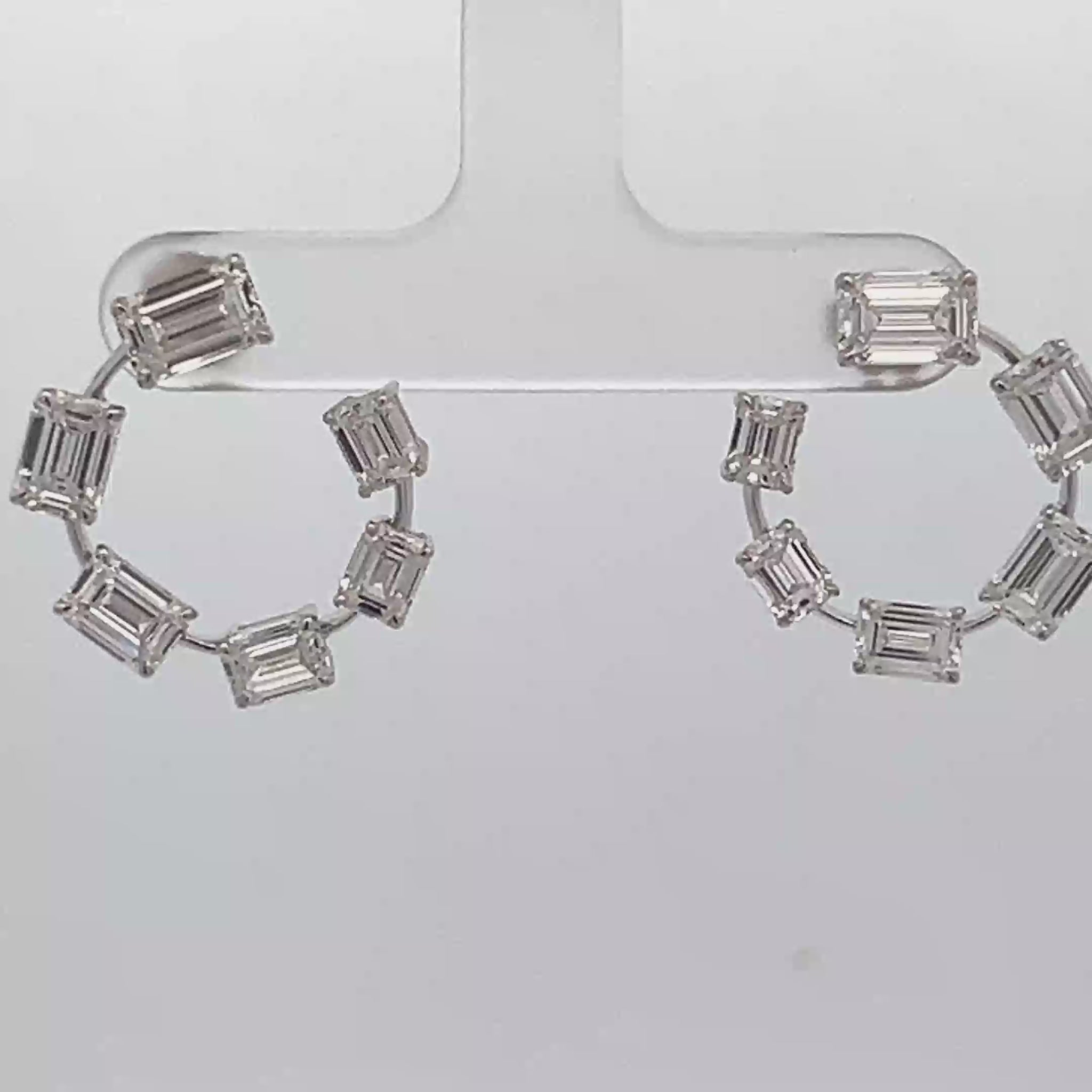 Lady's White 14 Karat Lab Grown Diamond Earrings With 12 = 7.03Twt Emerald Diamonds (5.2gr)