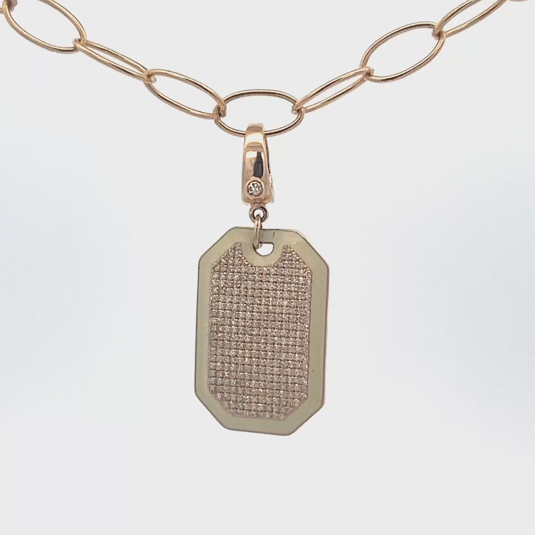 Lady's White 14 Karat Enamel Diamond Dog Tag Pendant With 283=0.85Tw Round Diamonds