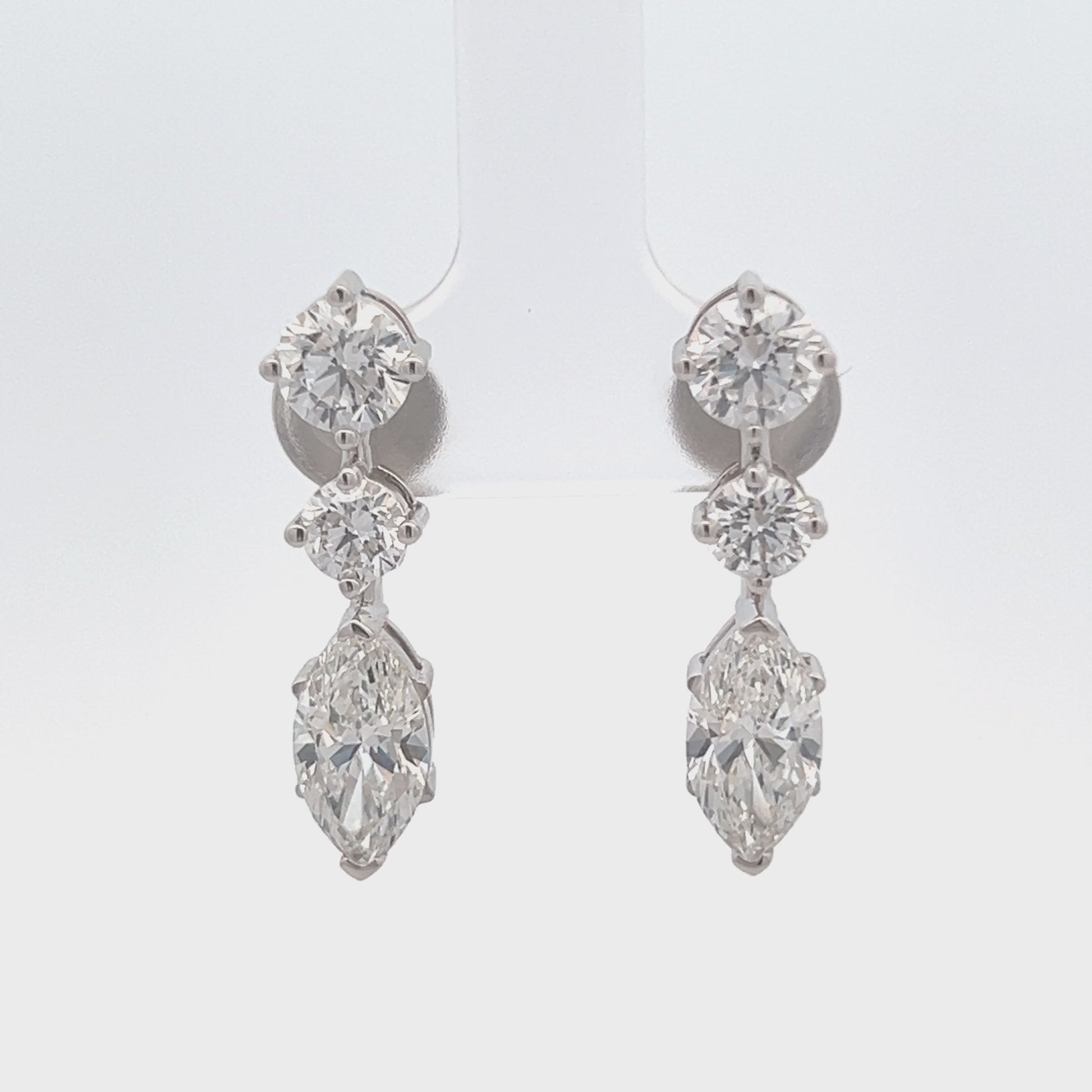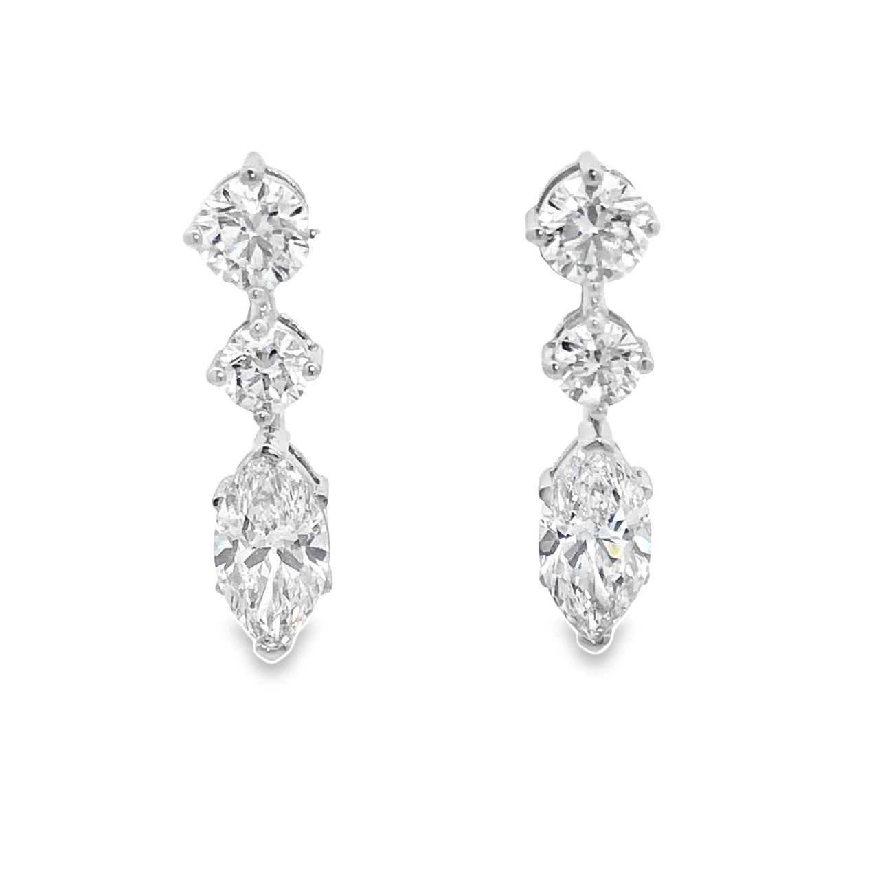 White Gold 14 Karat Lab Grown Diamond Earrings 2 (3.00tw) Marquise E/F VS1 Diamonds and 4 (2.29tw) Round E/F VS1 Diamonds