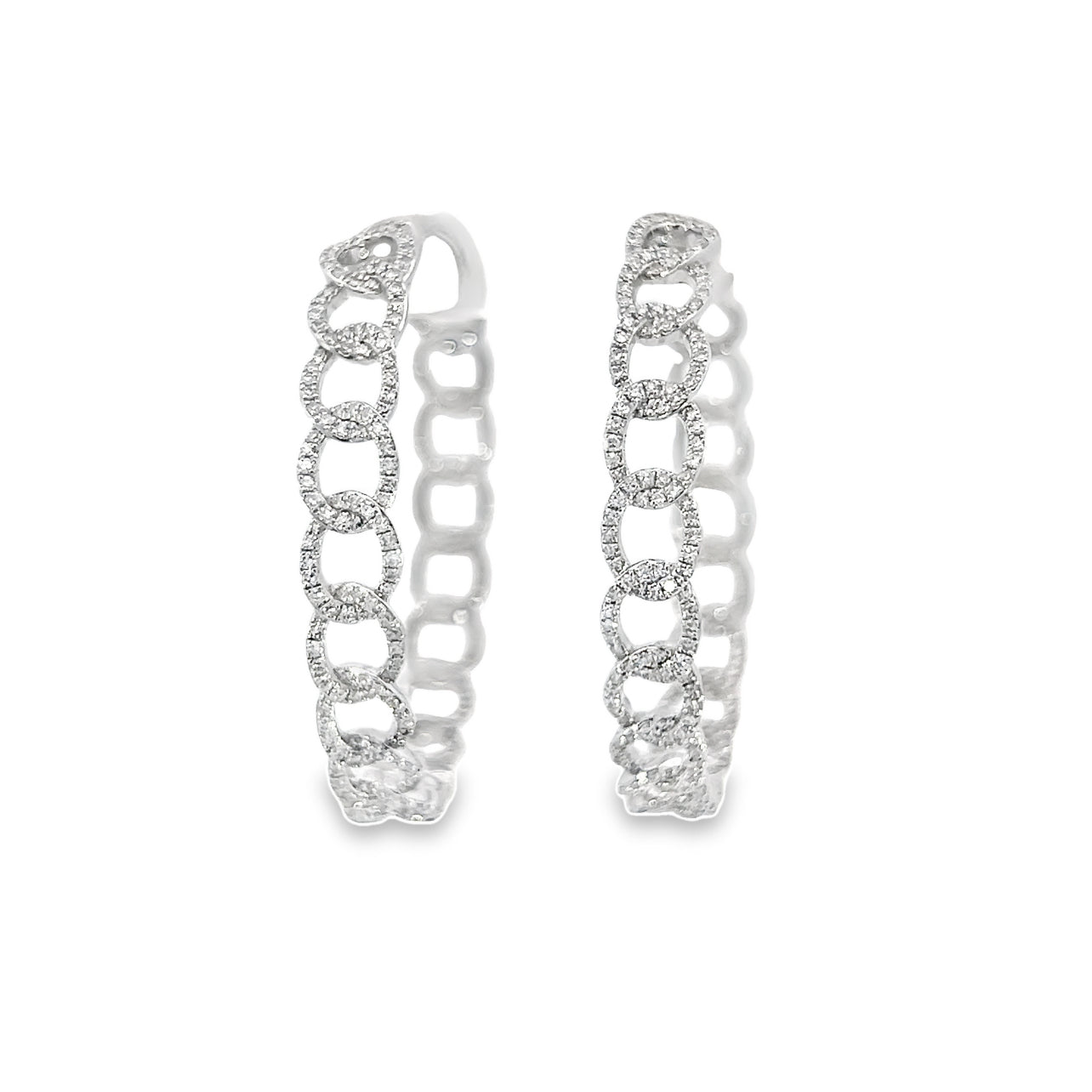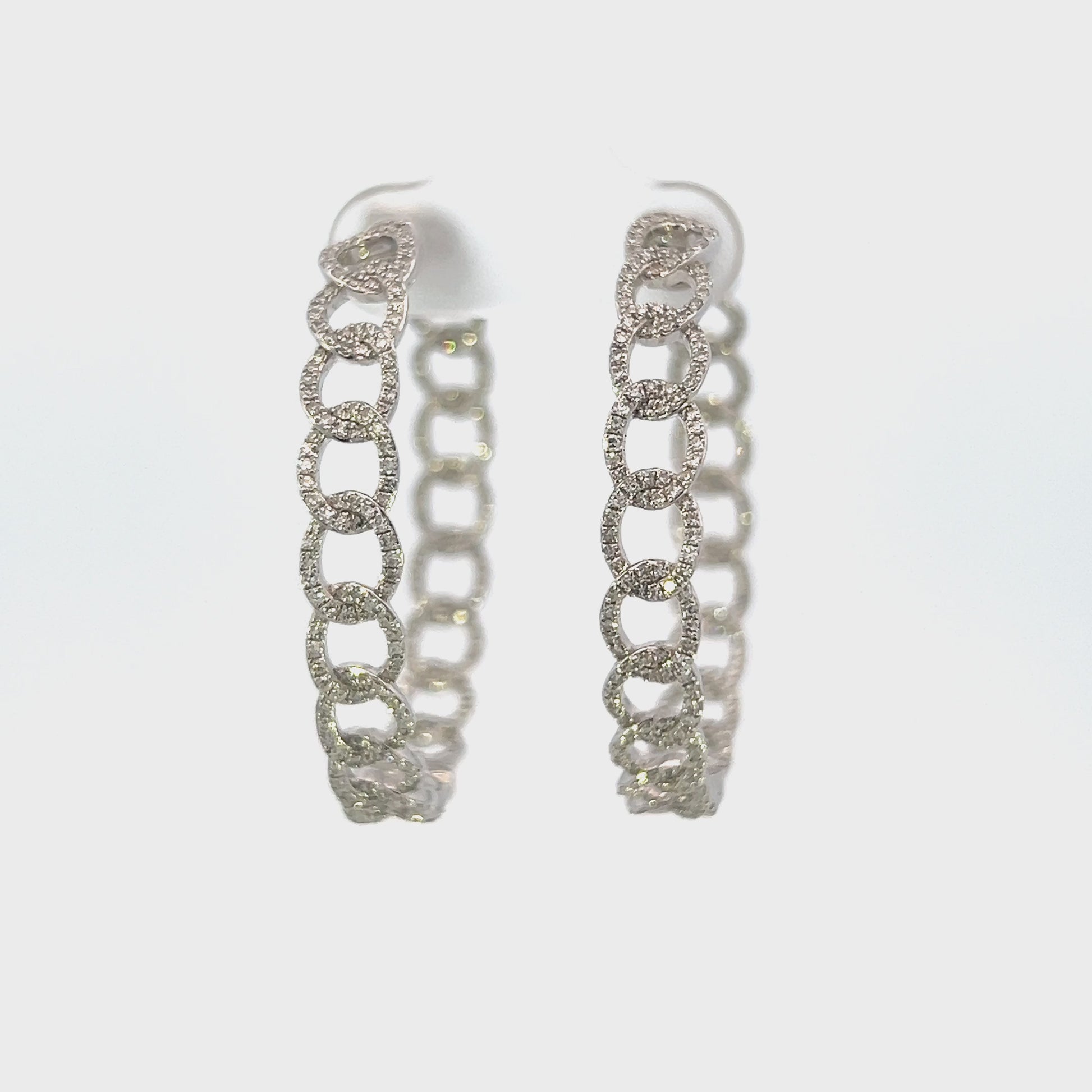 White Gold 14 Karat Diamond Curb Link Hoops Earrings With 638 Round Diamonds