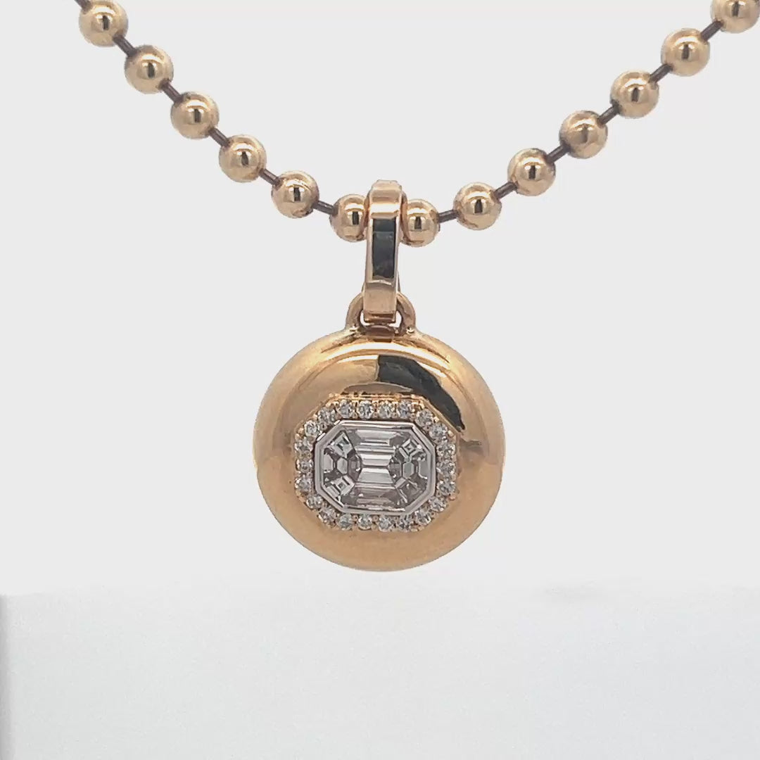 Discover the allure of this stunning gold pendant necklace, featuring a beautifully crafted round pendant adorned with sparkling diamonds. Perfect for any occasion, this piece adds a touch of elegance and sophistication to your outfit.