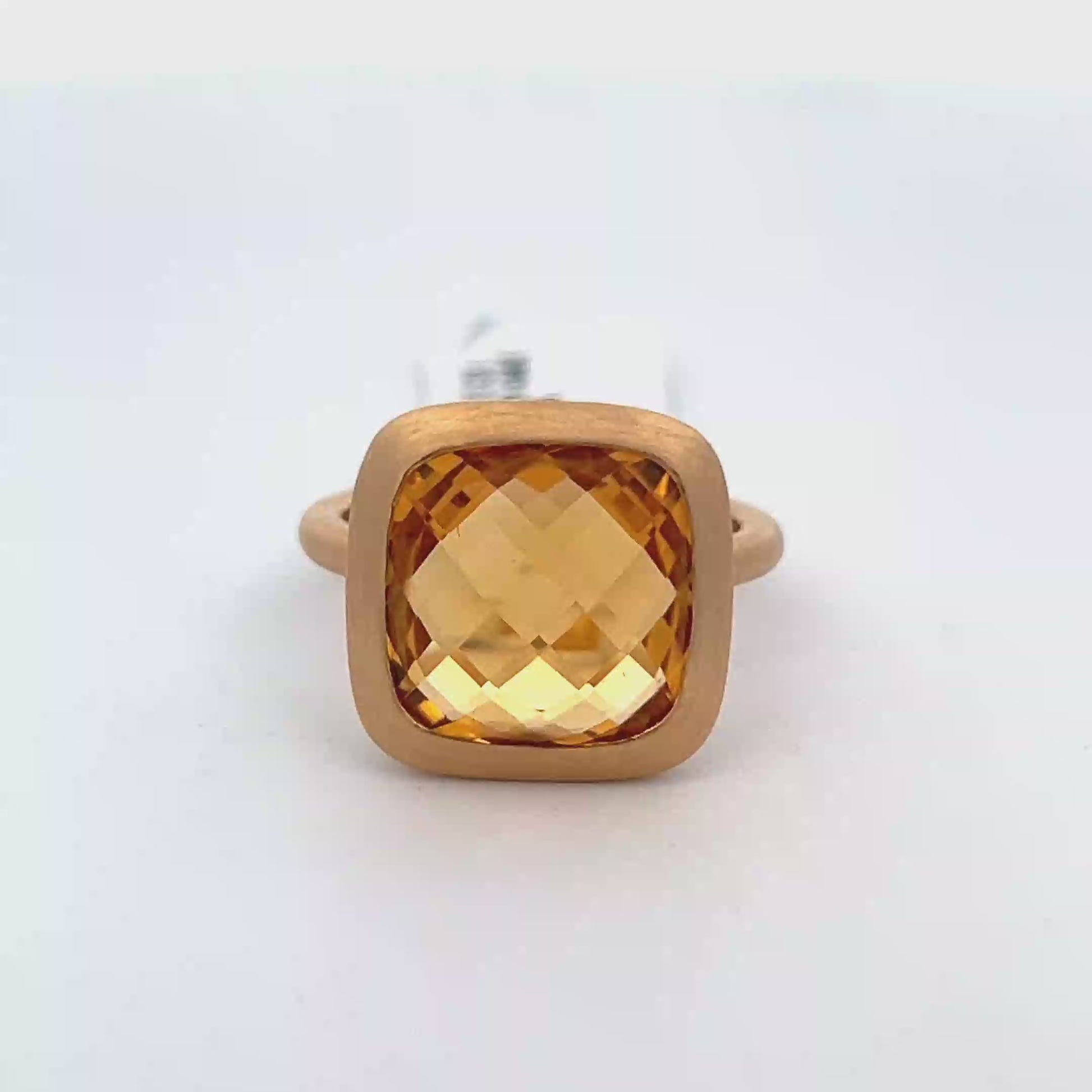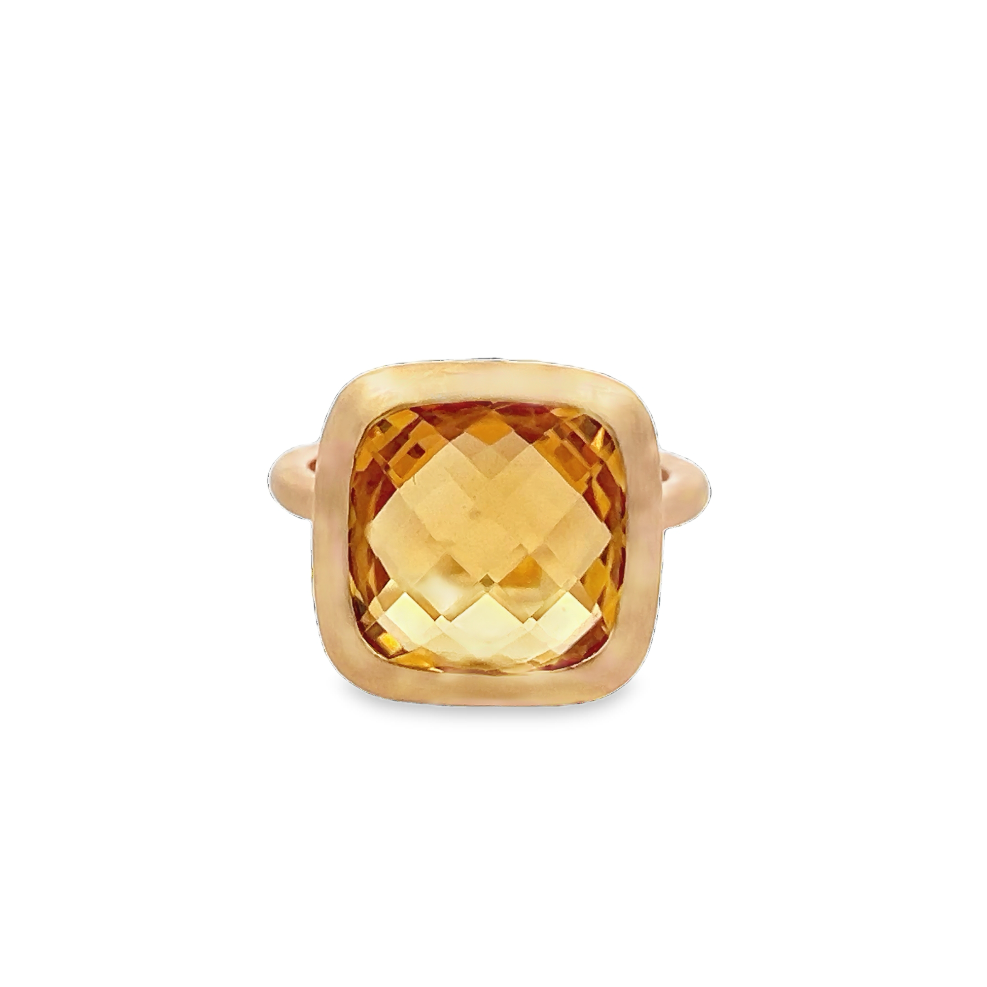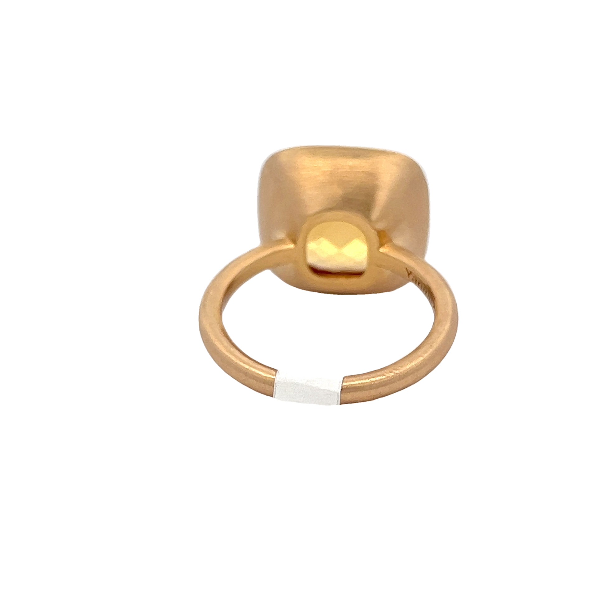 Lady's Yellow 18 Karat Satin Bezeled Citrine Fashion Ring With One 7.52Ct Cushion Citrine (10.4gr)