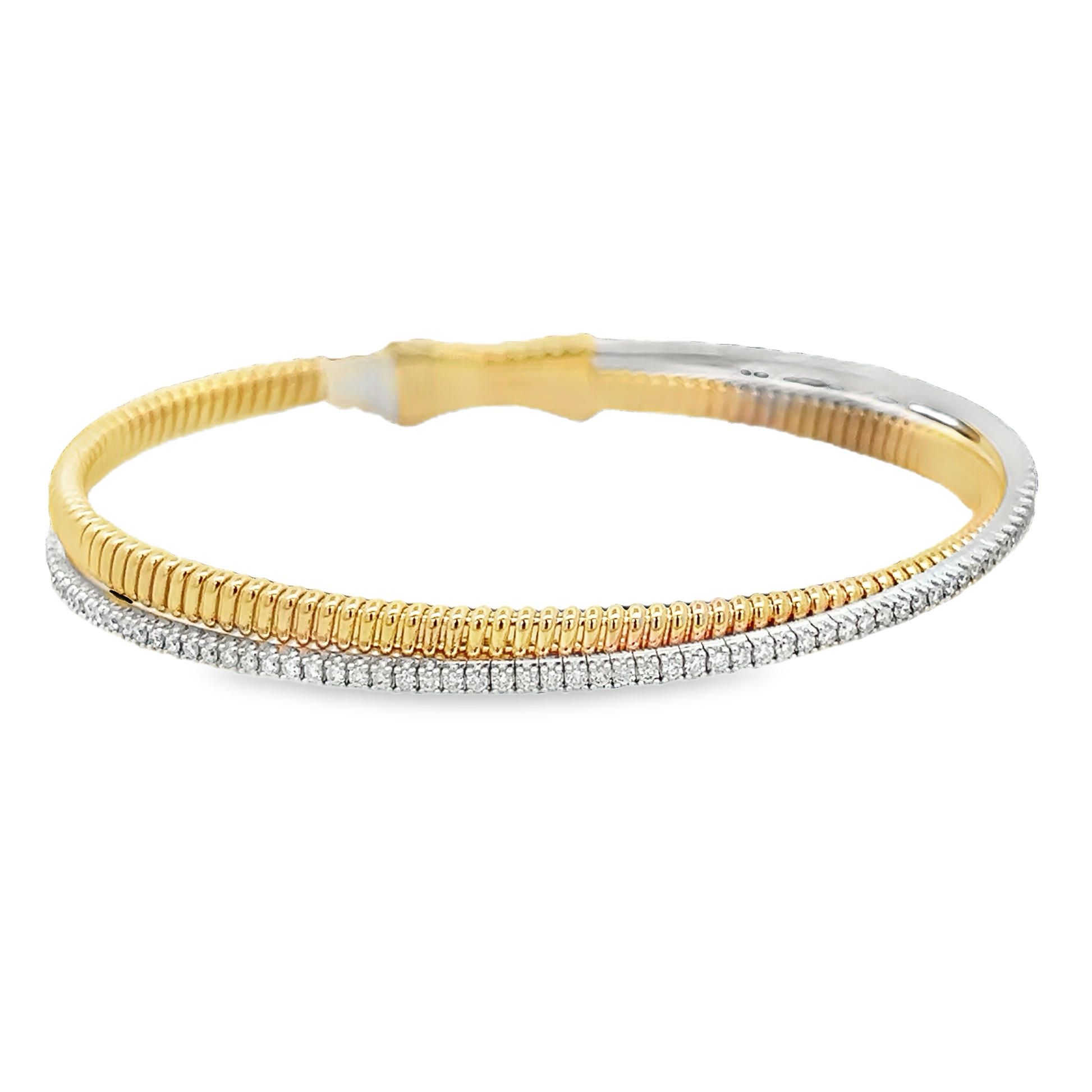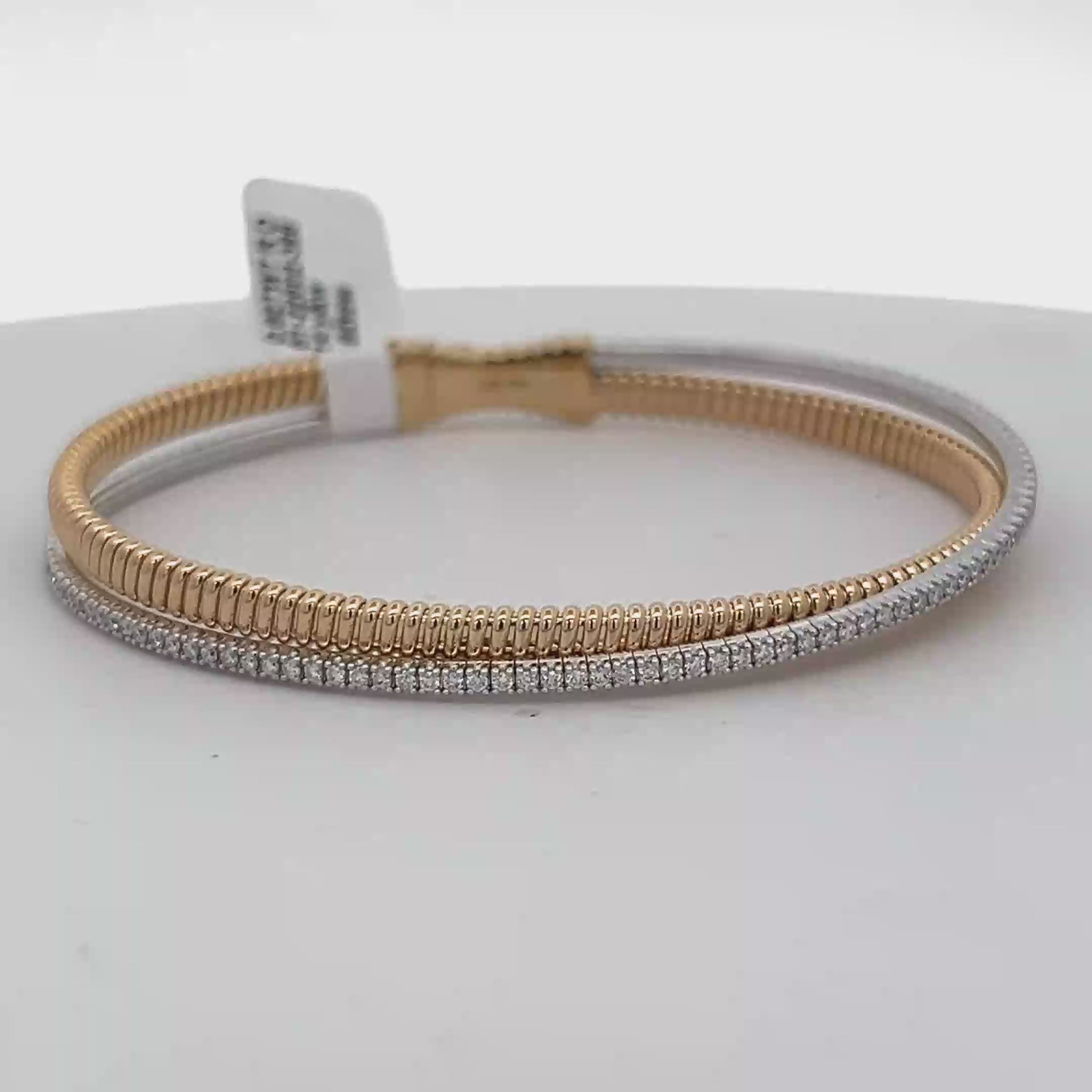Lady's Y&W 14 Karat Gooseneck And Diamond 2 row Bracelet With = 0.82Twt Round Diamonds (16.8gr)
